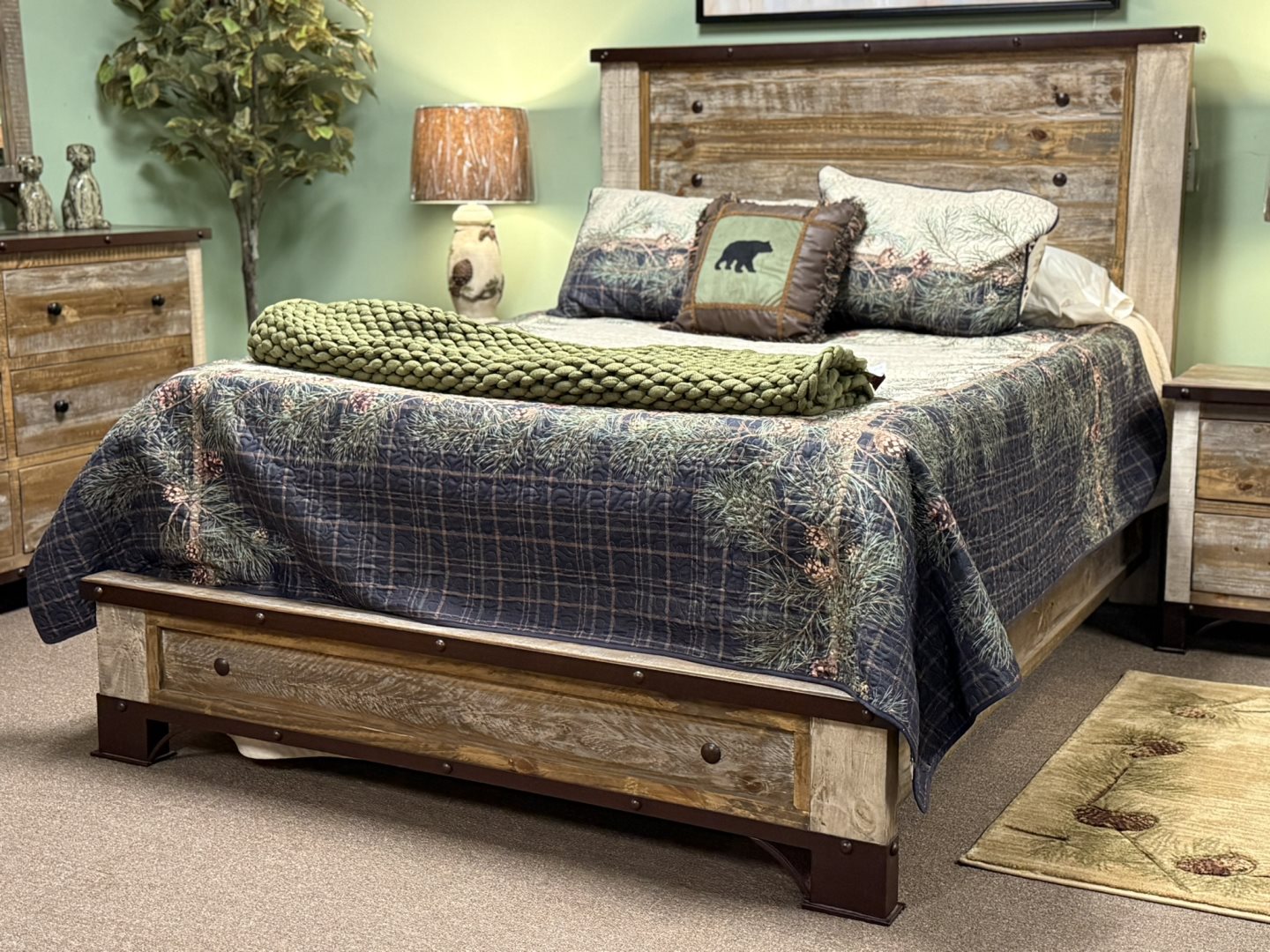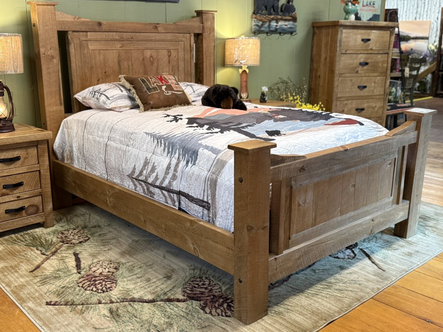 + Rustic bedroom sets include solid wood sets made from Reclaimed Oak, Aspen Logs, and Barked Hickory/Hickory wood by Individual Amish workshops with a Natural (Clearcoat) Finish. Each piece has unique and rugged characteristics