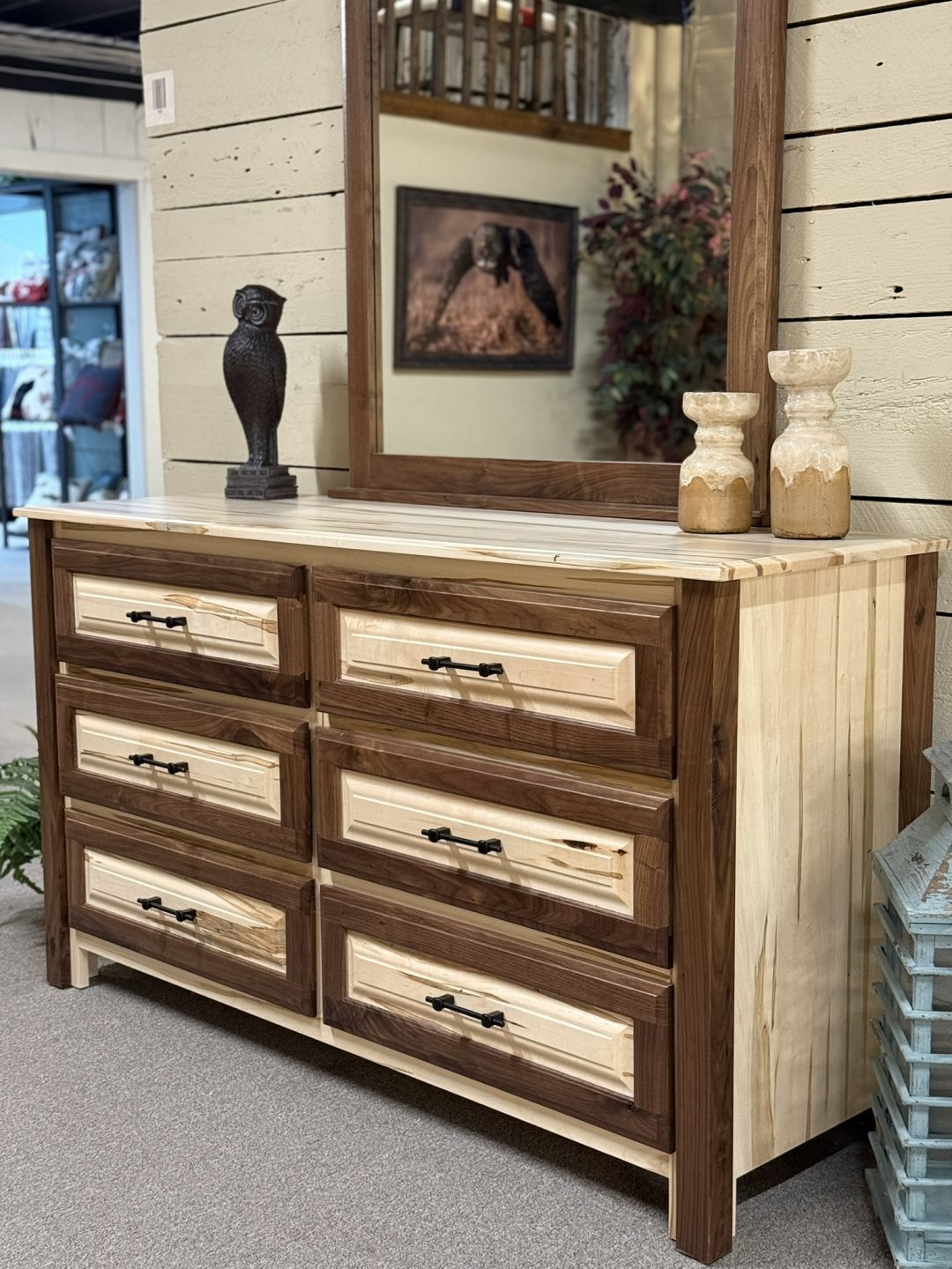 WM-7001/ - 6 Drawer Dresser - 60 x21 x 34 - Solid Wormy Maple & Walnut - Allegheny Collection WM-7001/ - 6 Drawer Dresser - 60 x21 x 34 - Solid Wormy Maple & Walnut - Allegheny Collection
