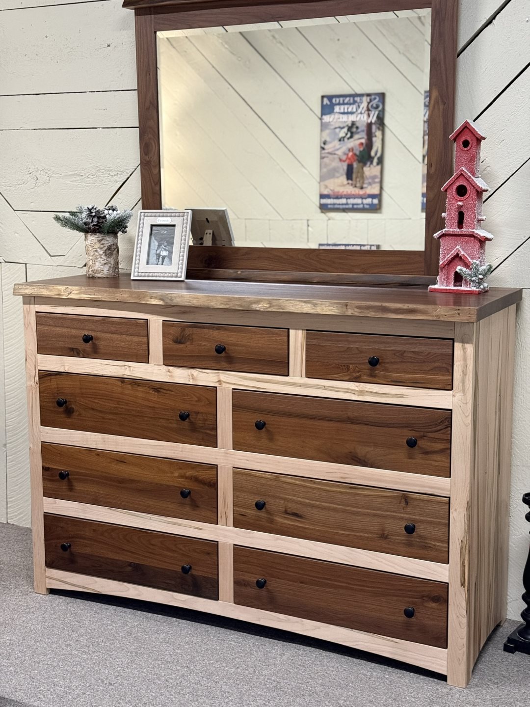 1002/ - 9 Drawer Dresser - 60 x 20 x 41.50 - Solid Wormy Maple & Walnut - Live Edge Collection 1002/ - 9 Drawer Dresser - 60 x 20 x 41.50 - Solid Wormy Maple & Walnut - Live Edge Collection