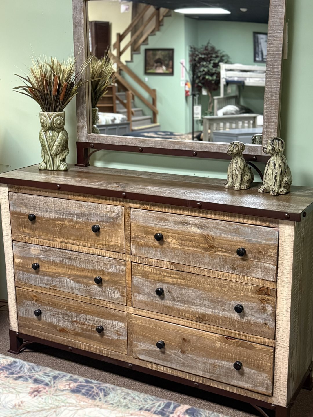 WD-335/ - 6 Drawer Dresser - 65 x 19 x 34 - Reclaimed Oak - Western Deluxe Collection WD-335/ - 6 Drawer Dresser - 65 x 19 x 34 - Reclaimed Oak - Western Deluxe Collection