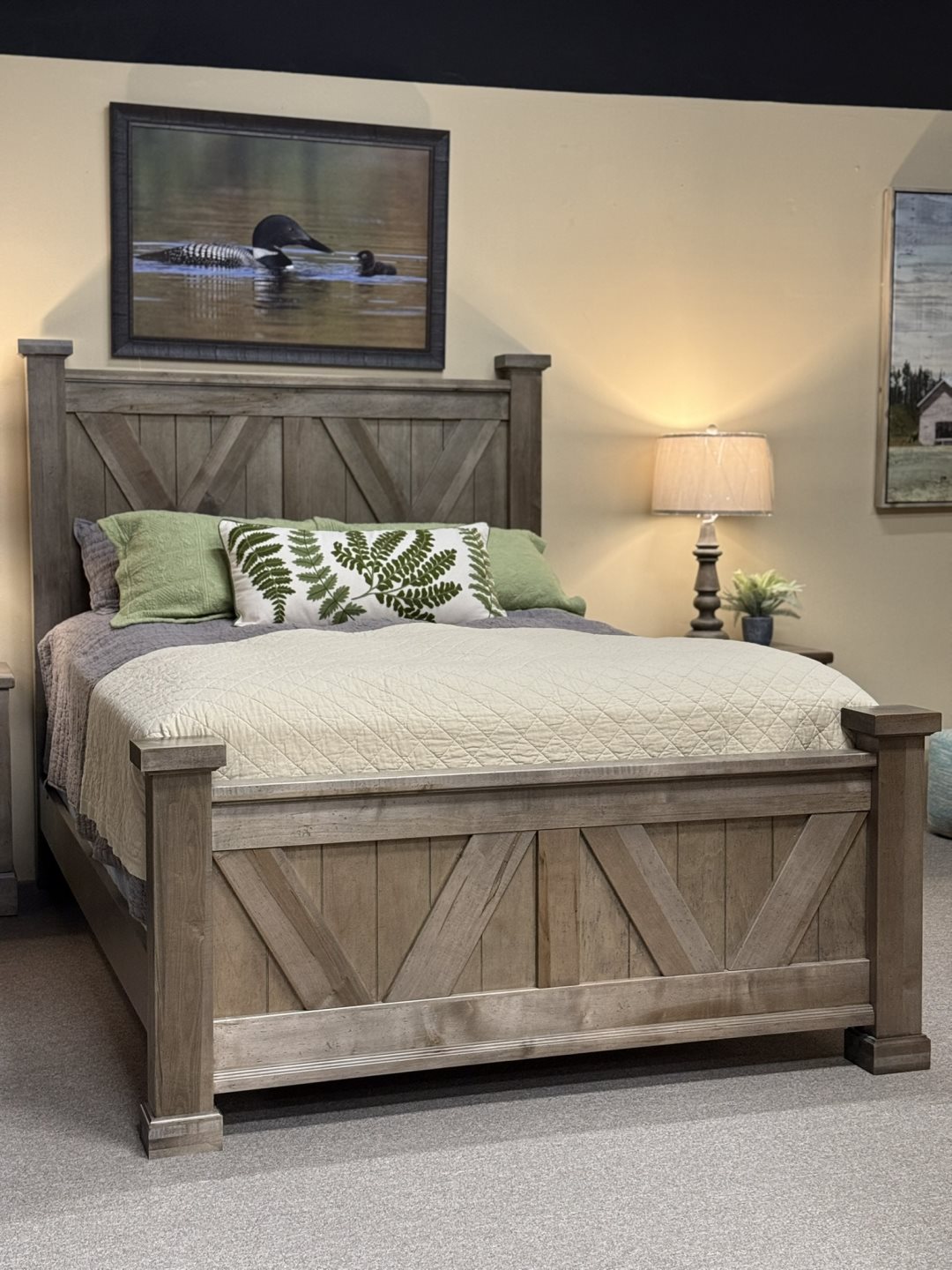 Vaughan-Basset - 172,Stone Grey - Queen X-Barn Bed - 64 x 91 x 63 High - Solid Maple & Birch - Cool Rustic Collection Vaughan-Basset - 172,Stone Grey - Queen X-Barn Bed - 64 x 91 x 63 High - Solid Maple & Birch - Cool Rustic Collection