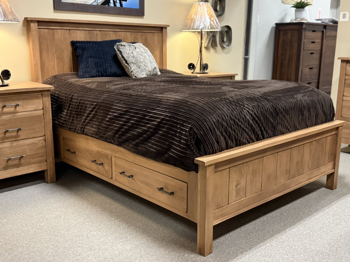 CA-407 - Queen Log Slat Storage Bed, 3 Drawers, 69 x 96 x 60 - Solid Aspen - Stoney Ridge Collection CA-407 - Queen Log Slat Storage Bed, 3 Drawers, 69 x 96 x 60 - Solid Aspen - Stoney Ridge Collection