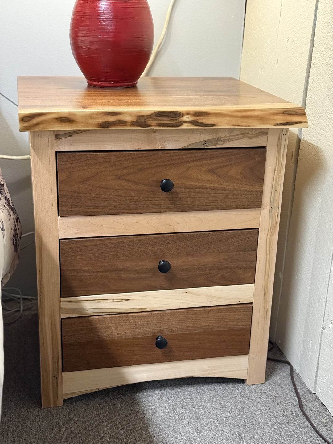 1003/ - 3 Drawer Nightstand - 24 x 20 x 28.50 - Solid Wormy Maple & Walnut - Live Edge Collection 1003/ - 3 Drawer Nightstand - 24 x 20 x 28.50 - Solid Wormy Maple & Walnut - Live Edge Collection