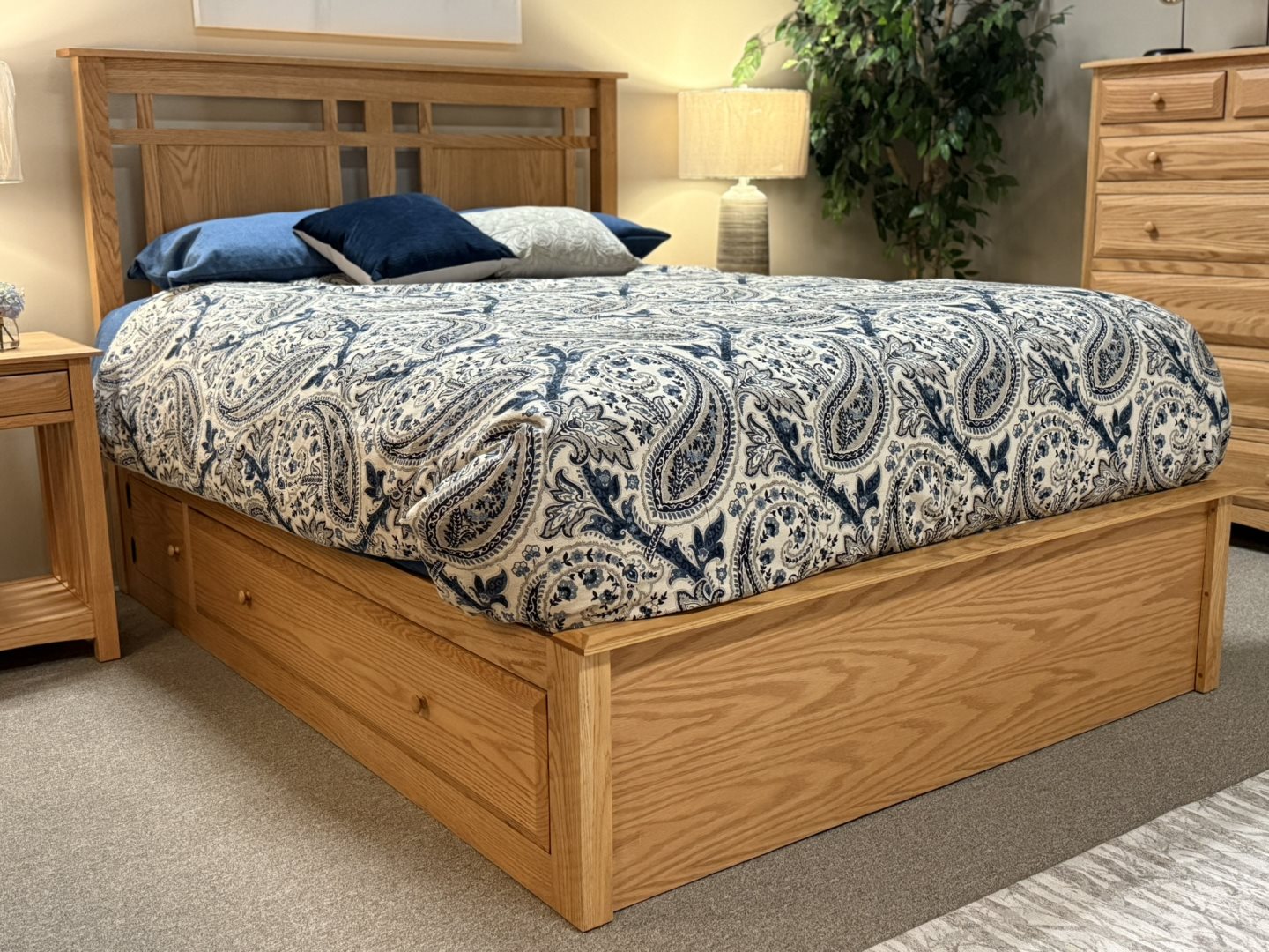 Queen Heartland Headboard on Simplicity Platform Storage Bed w/60" Drawers - 65 x 87.50 x 54 High - Oak Queen Heartland Headboard on Simplicity Platform Storage Bed w/60" Drawers - 65 x 87.50 x 54 High - Oak