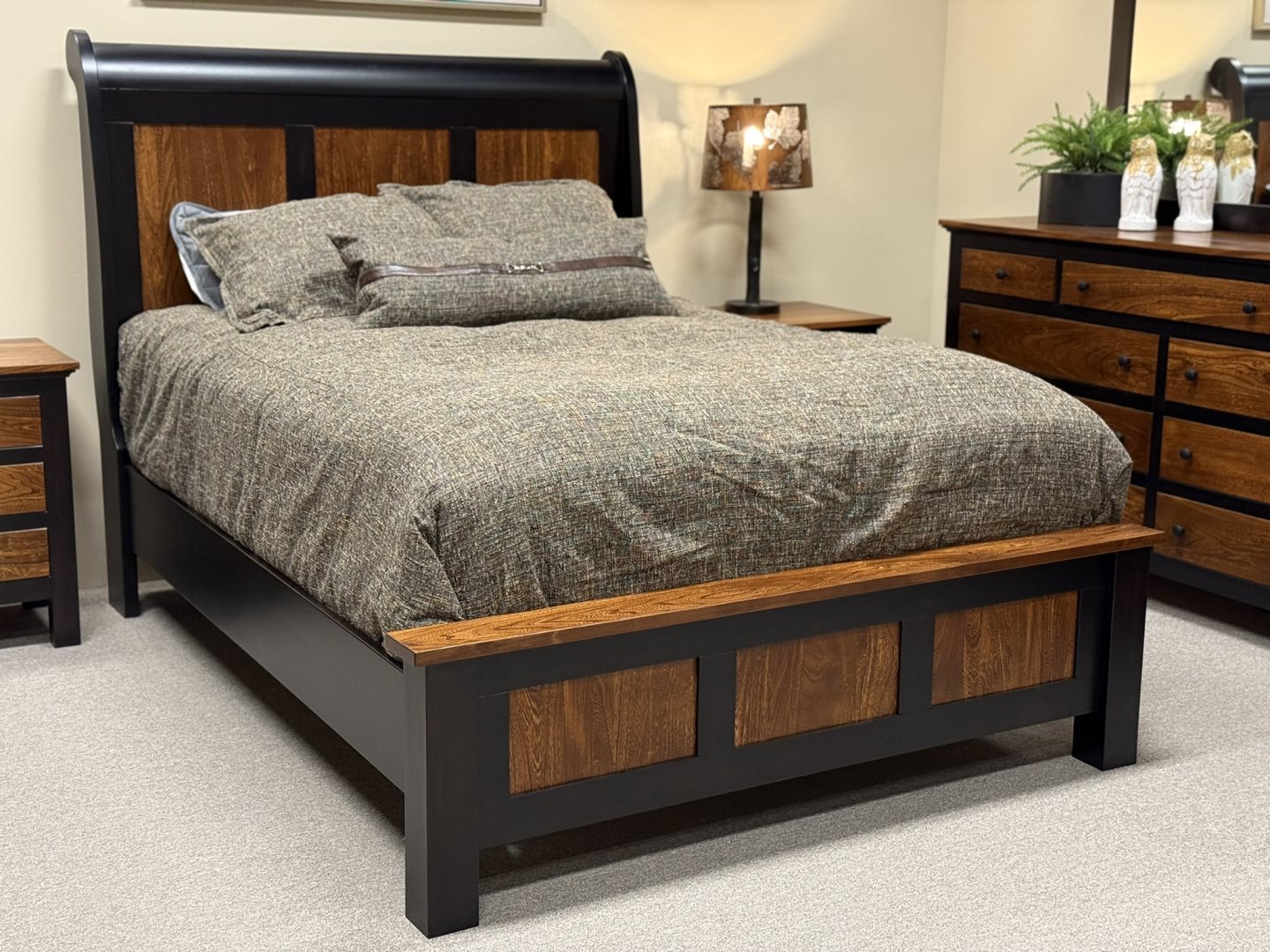 328 - Queen Panel Bed w/Sleigh Headboard - 67 x 92 x 59.50 High - Solid Brown Maple & Elm, 2 Tone Stain - London Collection 328 - Queen Panel Bed w/Sleigh Headboard - 67 x 92 x 59.50 High - Solid Brown Maple & Elm, 2 Tone Stain - London Collection