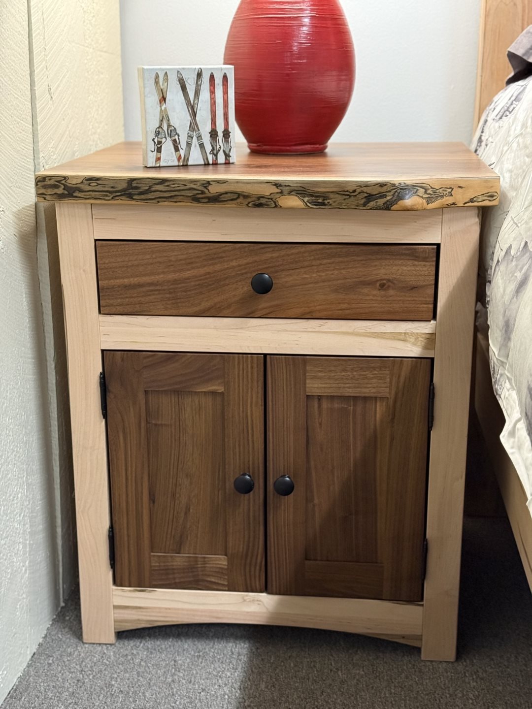 1004/ - 1 Drawer 2 Door Nightstand - 24 x 20 x 28.50 - Solid Wormy Maple & Walnut - Live Edge Collection 1004/ - 1 Drawer 2 Door Nightstand - 24 x 20 x 28.50 - Solid Wormy Maple & Walnut - Live Edge Collection