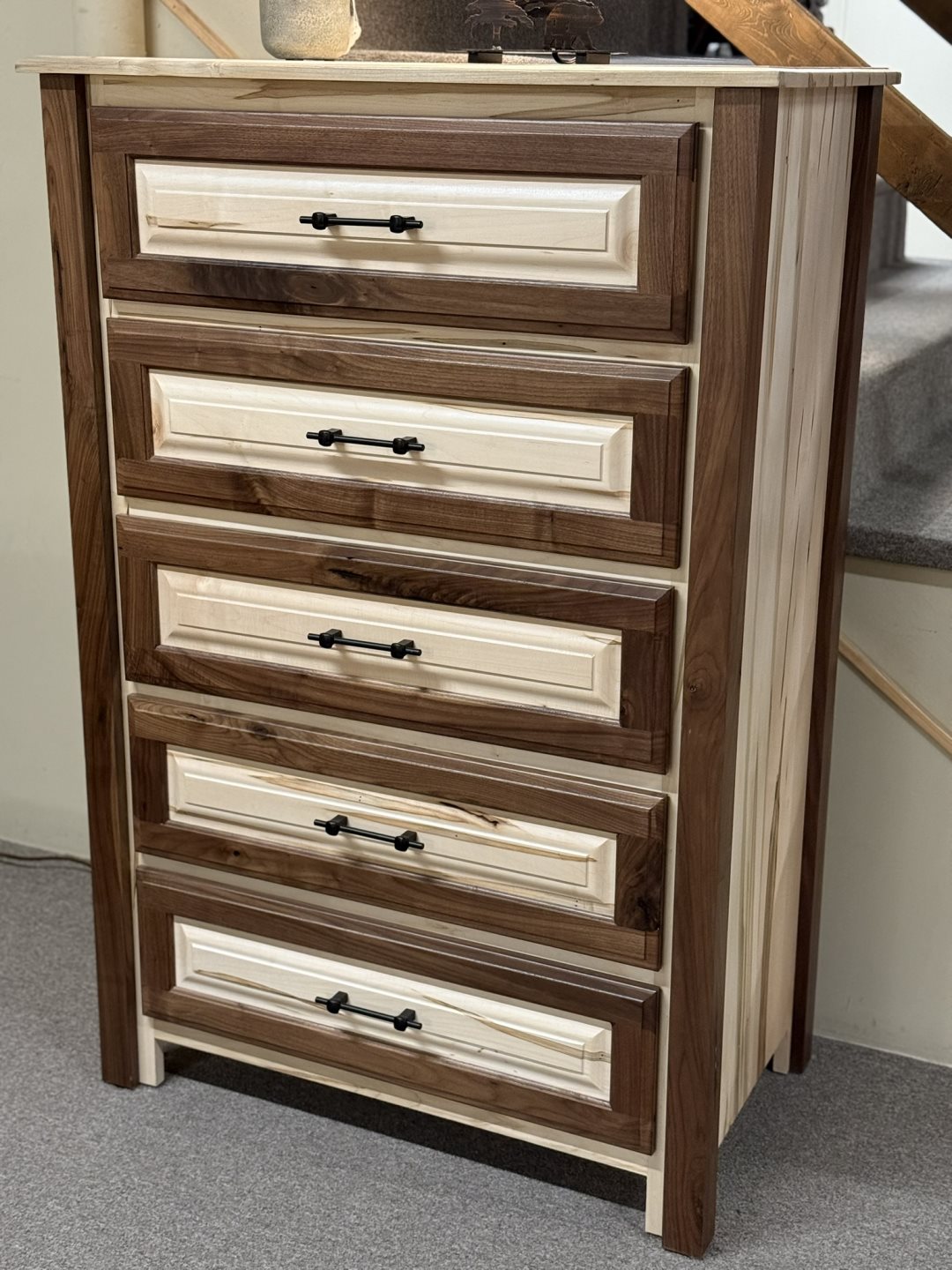 WM-7002/ - 5 Drawer Chest - 36 x 21 x 34 - Solid Wormy Maple & Walnut - Allegheny Collection WM-7002/ - 5 Drawer Chest - 36 x 21 x 34 - Solid Wormy Maple & Walnut - Allegheny Collection