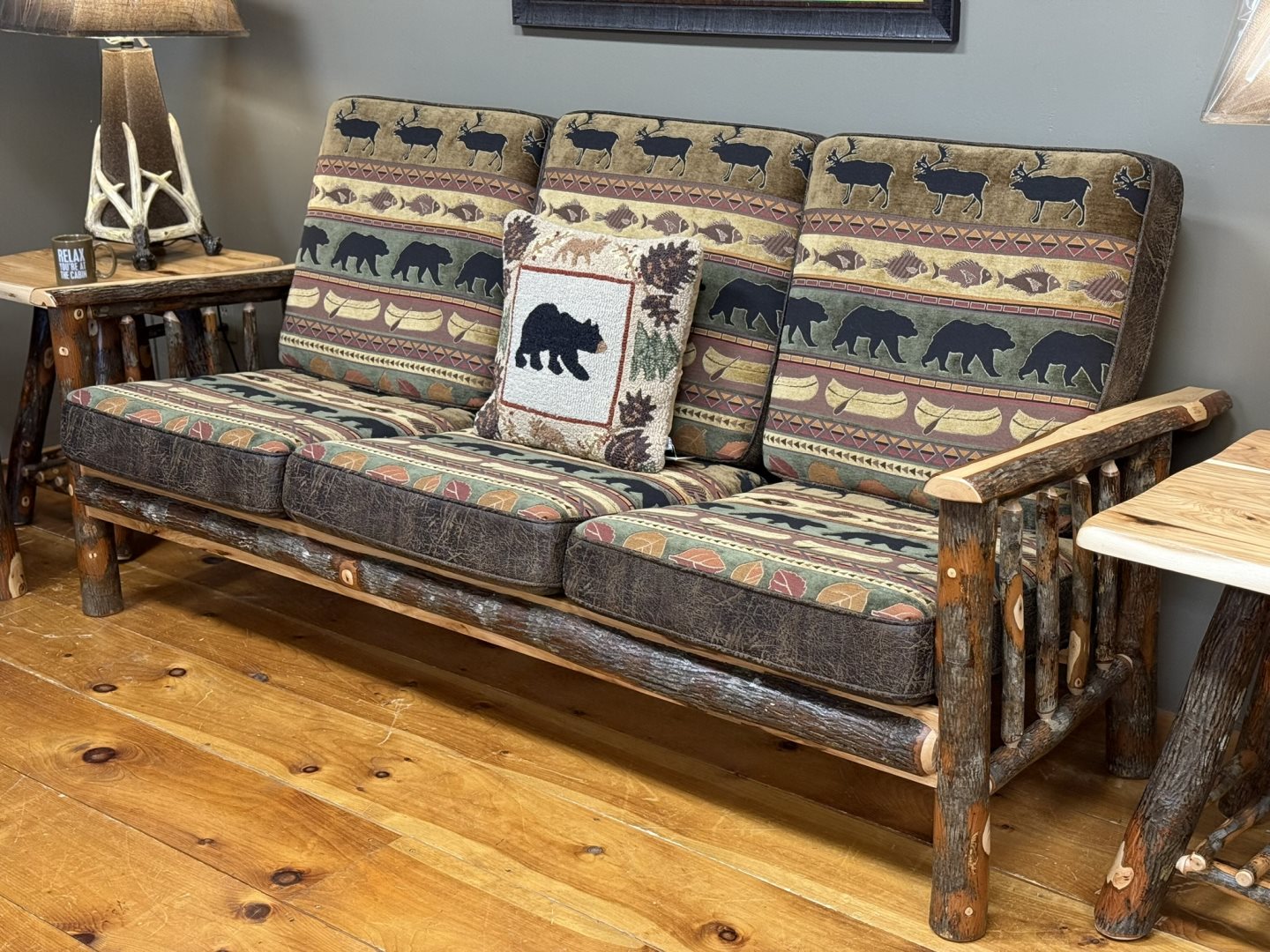 (#B-S1030-V1/3) - Sofa - 82 x 32 x 39 High - Barked Hickory Logs (#B-S1030-V1/3) - Sofa - 82 x 32 x 39 High - Barked Hickory Logs