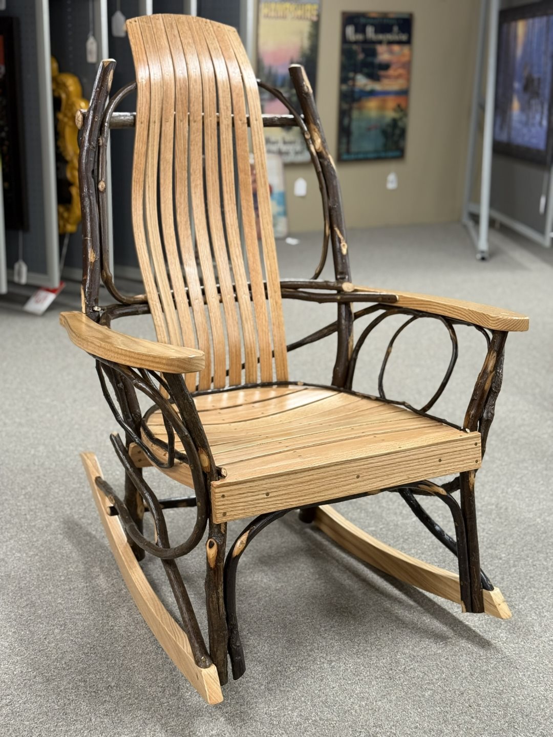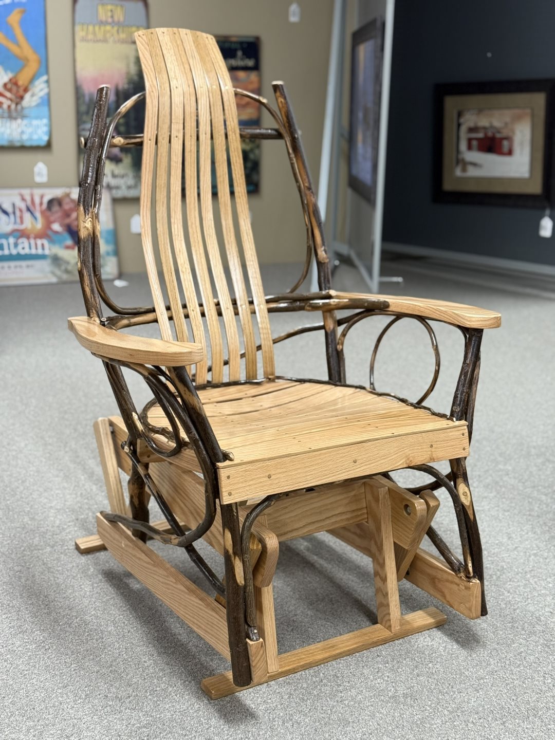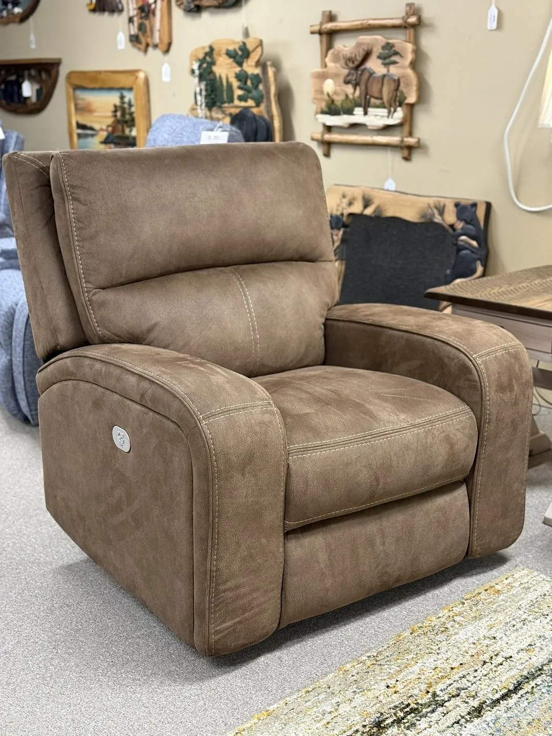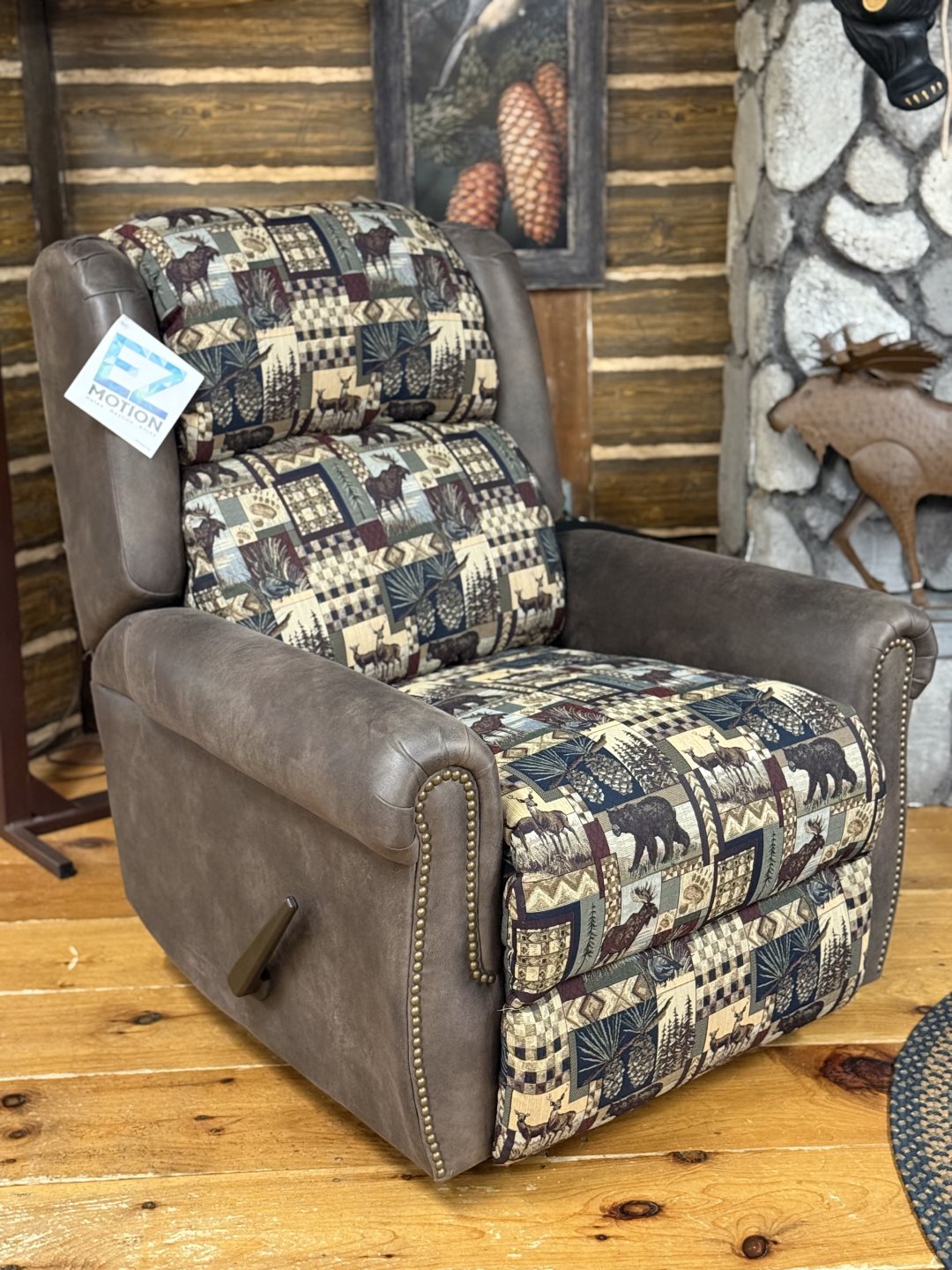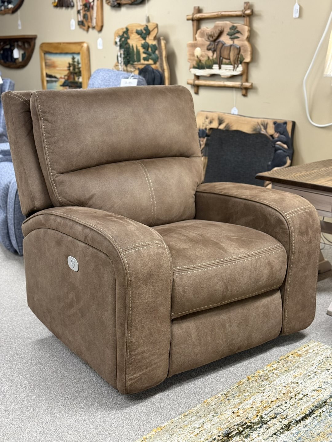(#85-1/2) - 37" Mission Power Wallhugger Recliner - Deluxe Pillowtop Back - Solid Hickory Frame, Barked Hickory Spindles - Available in Manual Recline, Available in Leather, Alternate Wood Options (#85-1/2) - 37" Mission Power Wallhugger Recliner - Deluxe Pillowtop Back - Solid Hickory Frame, Barked Hickory Spindles - Available in Manual Recline, Available in Leather, Alternate Wood Options