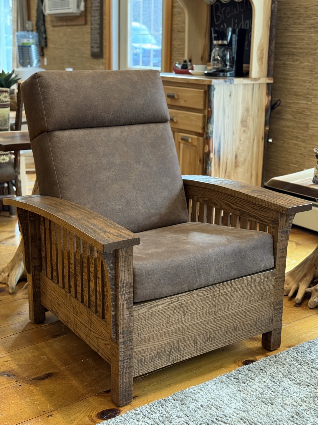 (#85-1/1) - 37" Mission Wallhugger Recliner - Deluxe Pillow Top Back, Solid Rough Sawn Oak - Available in Leather, Available in Power Recline, Alternate Wood Options (#85-1/1) - 37" Mission Wallhugger Recliner - Deluxe Pillow Top Back, Solid Rough Sawn Oak - Available in Leather, Available in Power Recline, Alternate Wood Options