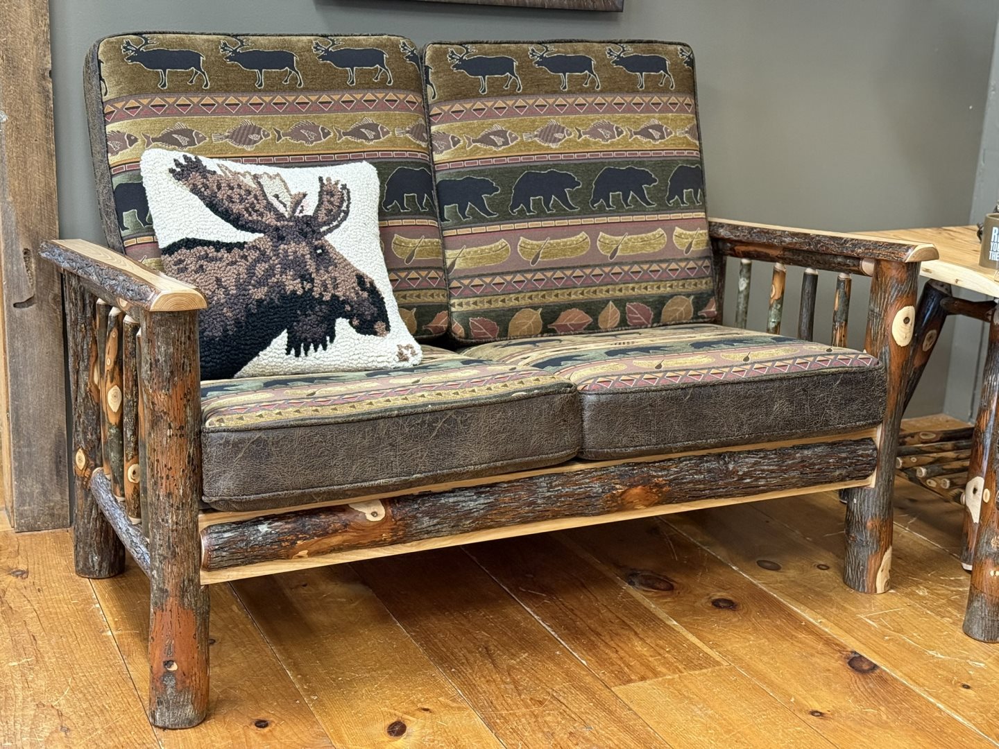 (#B-L1031-V1/3) - Loveseat - 59 x 32 x 39 High - Barked Hickory Logs (#B-L1031-V1/3) - Loveseat - 59 x 32 x 39 High - Barked Hickory Logs