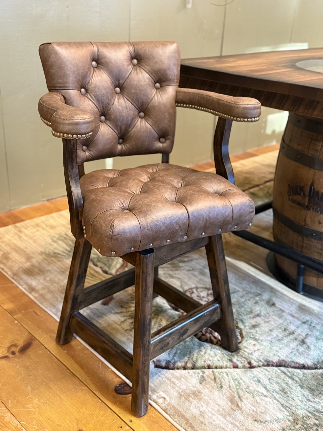 Omnia (#RANCH-40191/2) 26" Swivel Counter Stool - Top Grain Leather, Tufted Seat, Tufted Back, Tuscan Nailhead, Chocolate Finish Omnia (#RANCH-40191/2) 26" Swivel Counter Stool - Top Grain Leather, Tufted Seat, Tufted Back, Tuscan Nailhead, Chocolate Finish