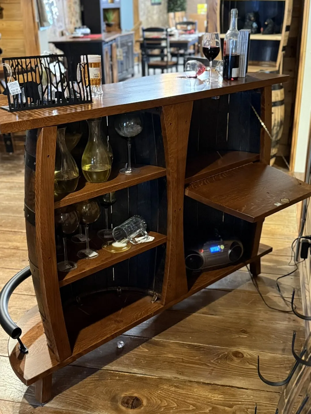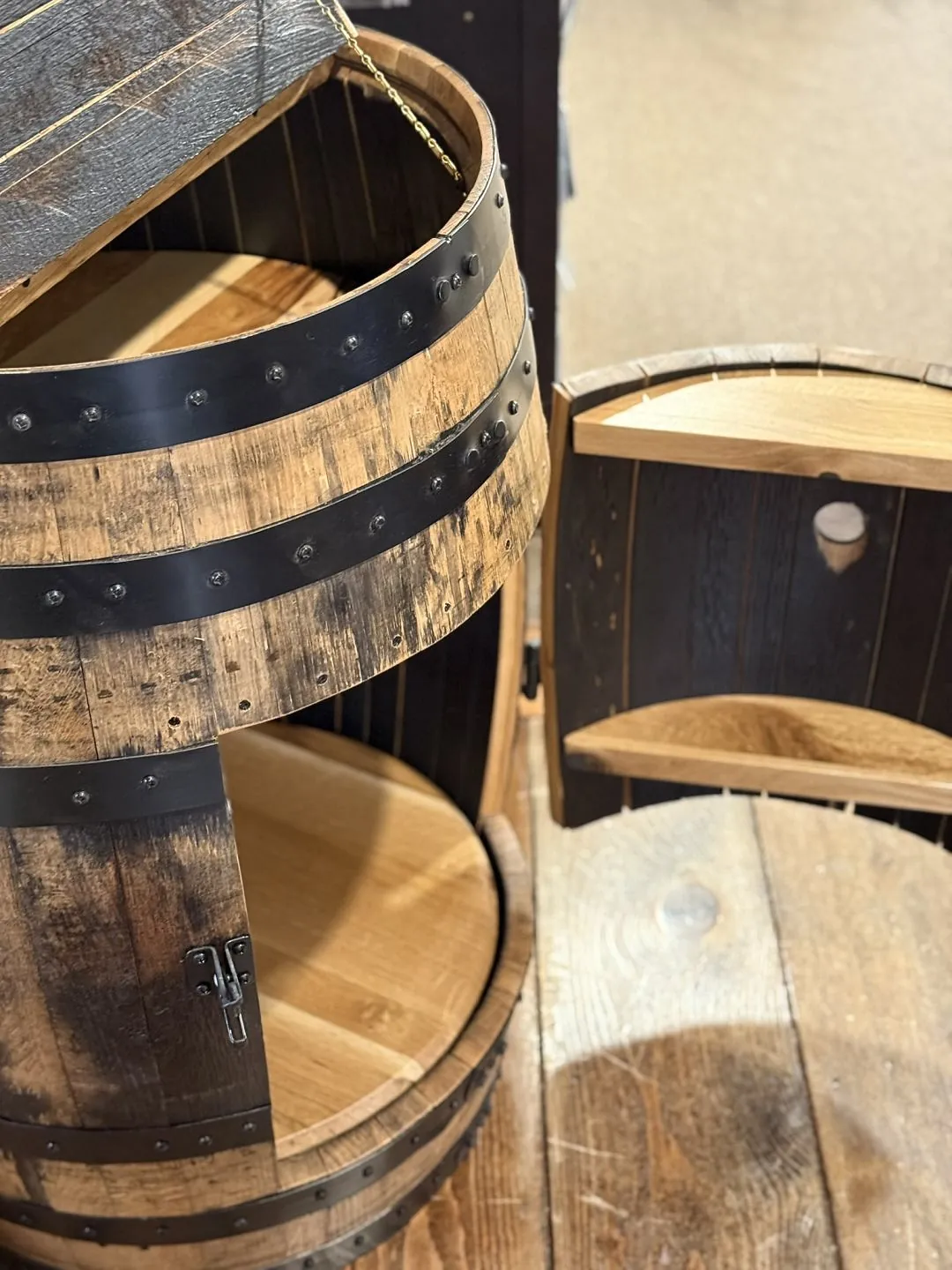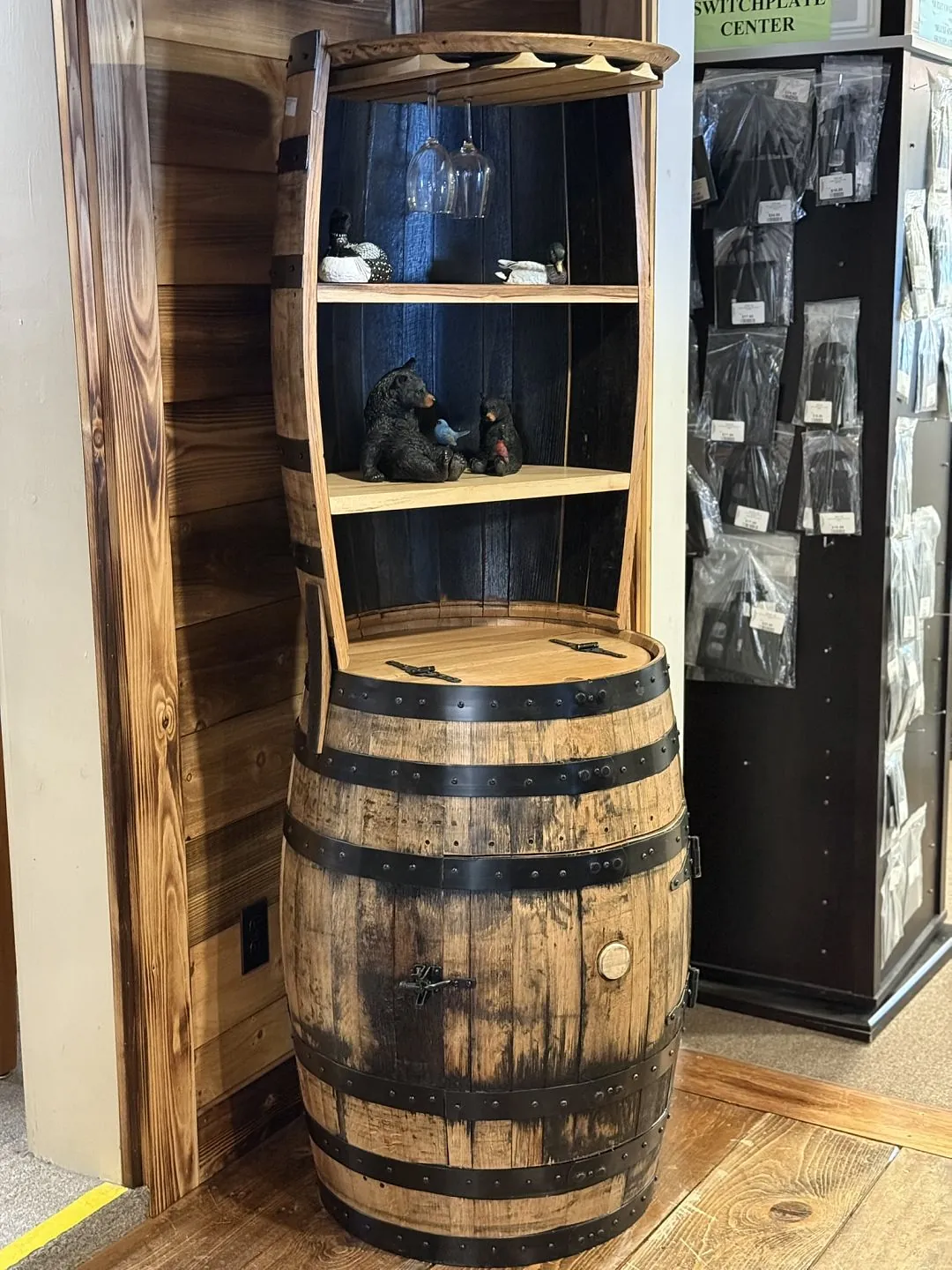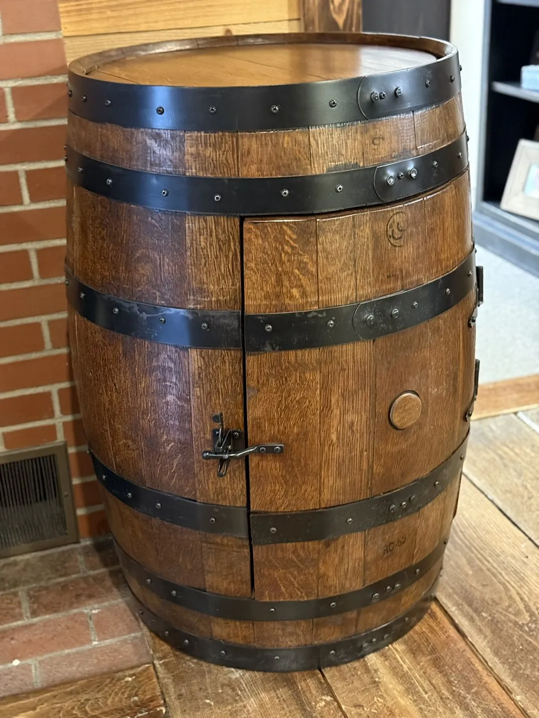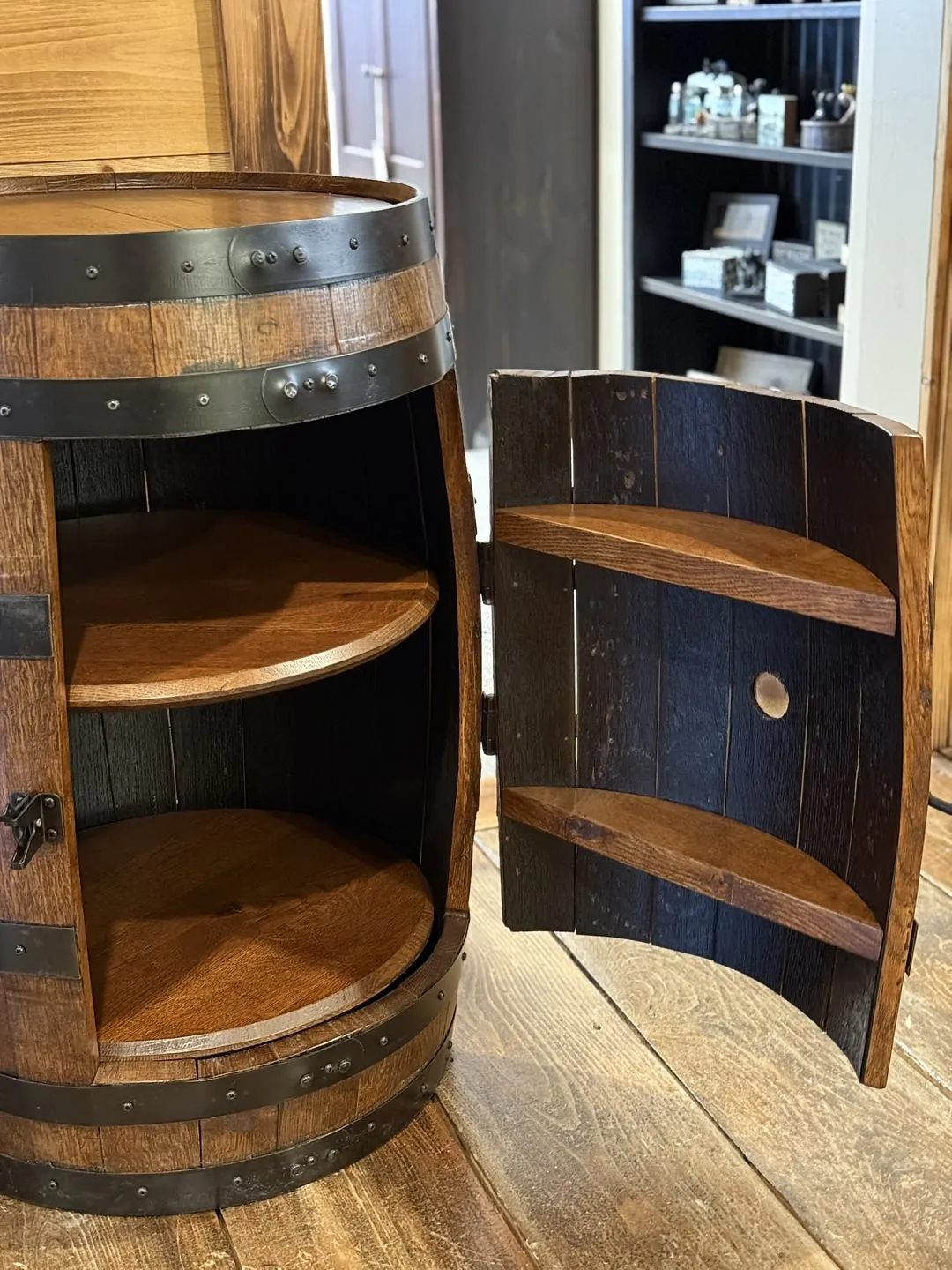 (#130) - Barrel Cabinet w/Lazy Susan - Authentic Whiskey Barrel (#130) - Barrel Cabinet w/Lazy Susan - Authentic Whiskey Barrel