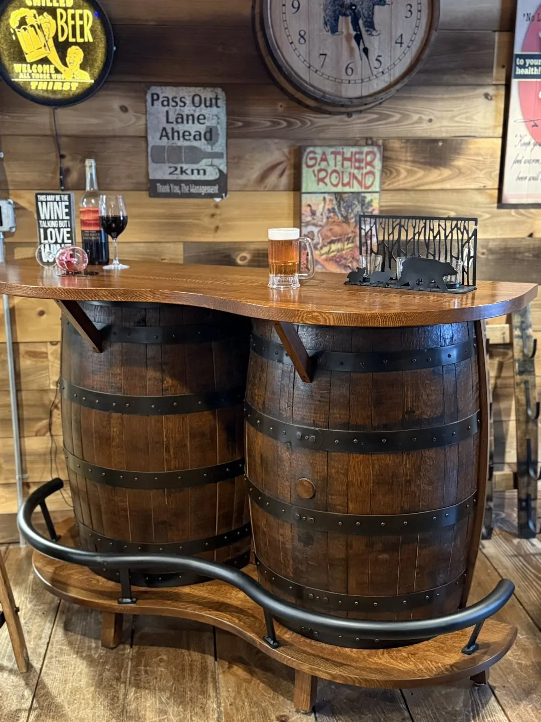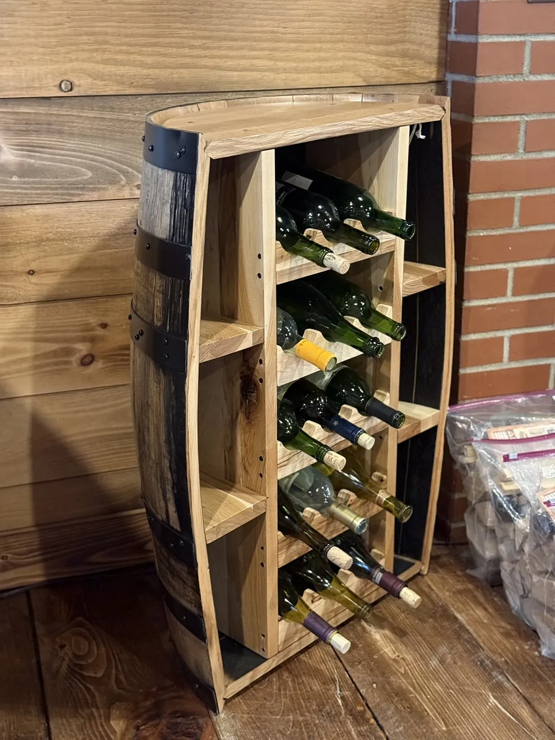 (#138) Half Barrel Bottle Holder - 35" High - Authentic Whiskey Barrel (#138) Half Barrel Bottle Holder - 35" High - Authentic Whiskey Barrel