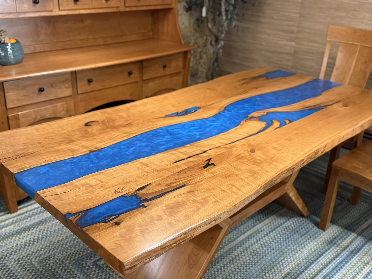Denver (#DENVER/2) Epoxy Resin River Table - 42 x 84 - Solid Rustic Cherry, Live Edge Slabs, Maui Resin Denver (#DENVER/2) Epoxy Resin River Table - 42 x 84 - Solid Rustic Cherry, Live Edge Slabs, Maui Resin