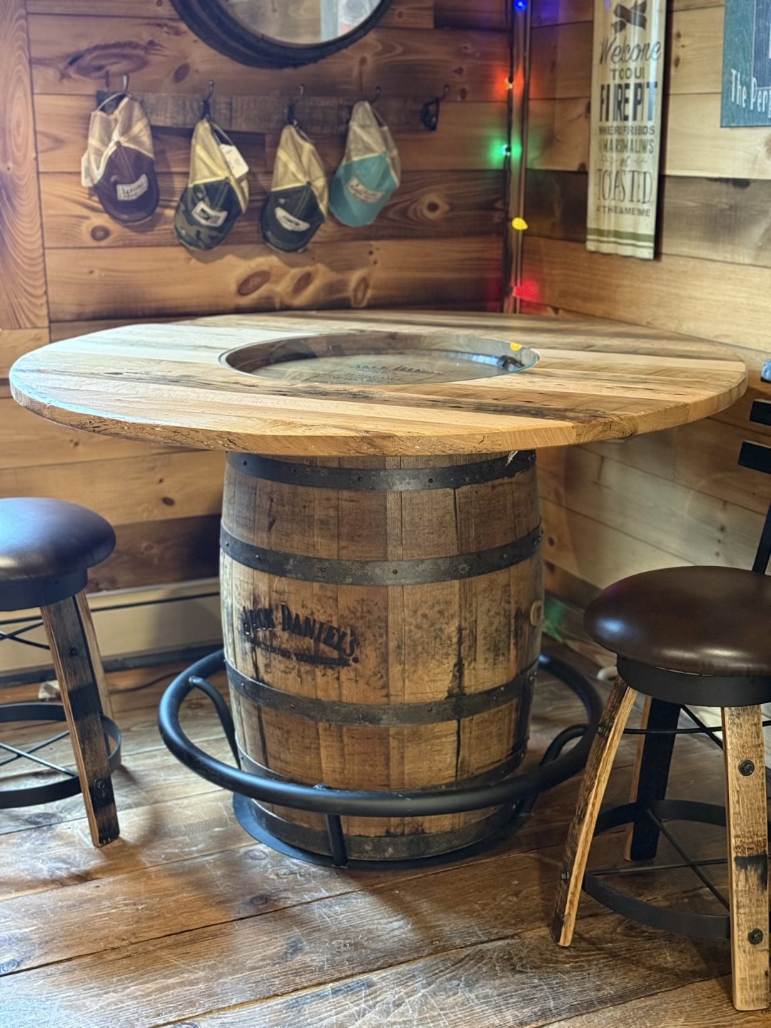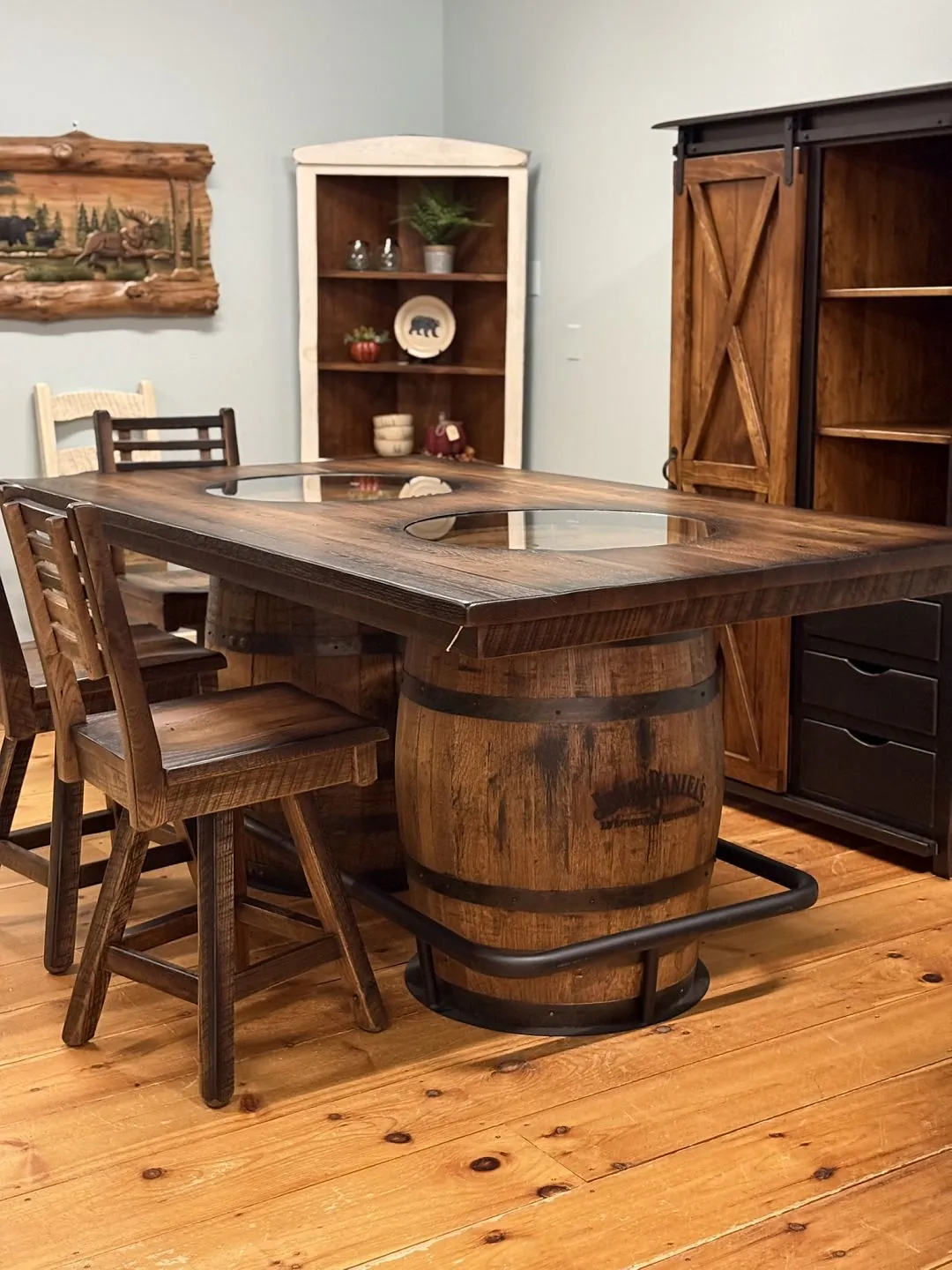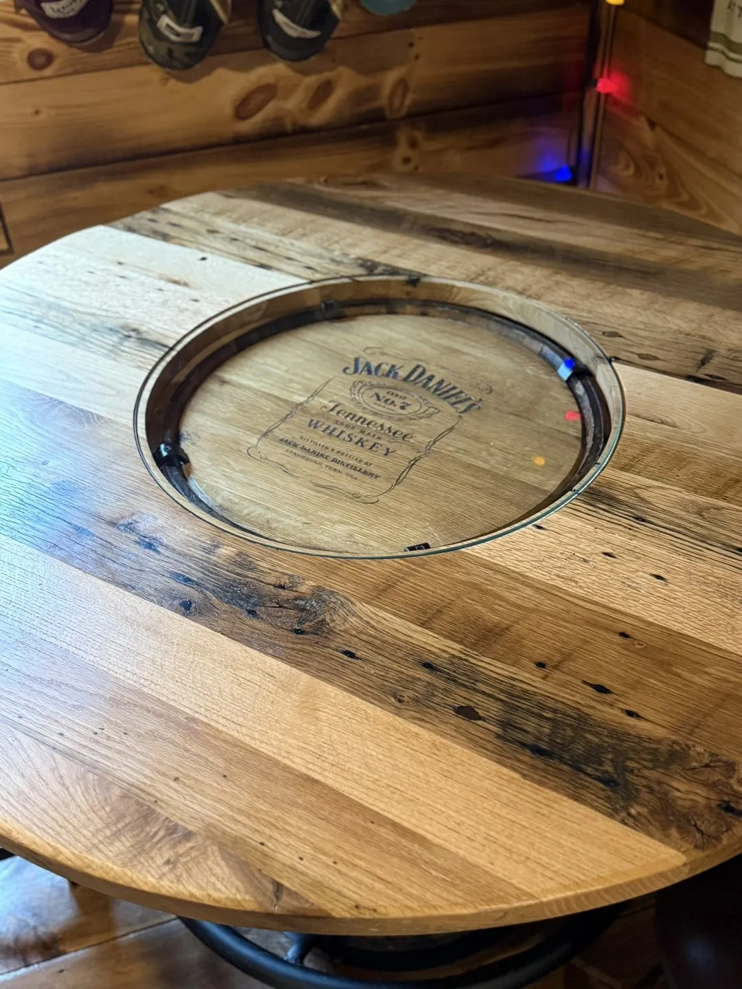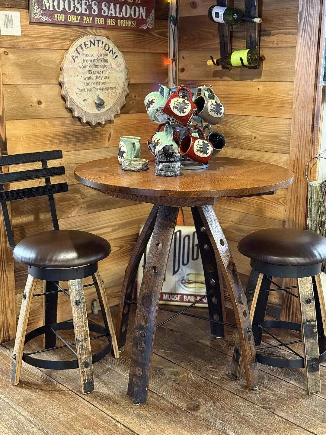 RBT-433 - JD's Barrel Table - Reclaimed Oak Top RBT-433 - JD's Barrel Table - Reclaimed Oak Top