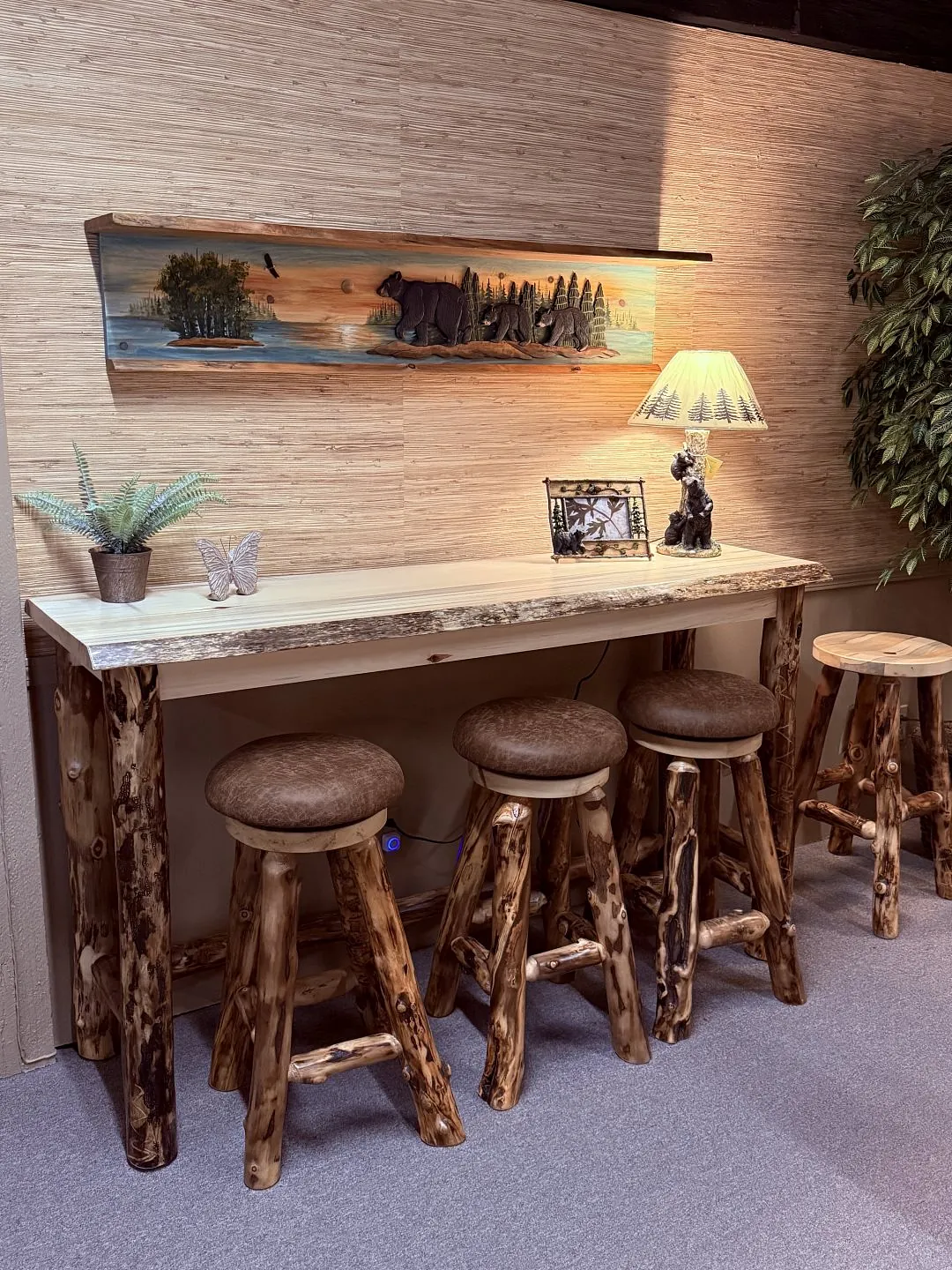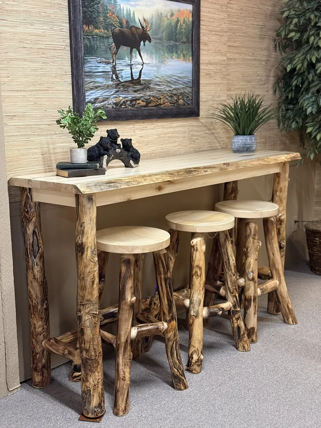 (#CA-226) Breakfast Bar & 30" Pad Seat Stools (#CA-225/1) - 72 x 22 x 42 - Solid Aspen, Live Edge Top (#CA-226) Breakfast Bar & 30" Pad Seat Stools (#CA-225/1) - 72 x 22 x 42 - Solid Aspen, Live Edge Top