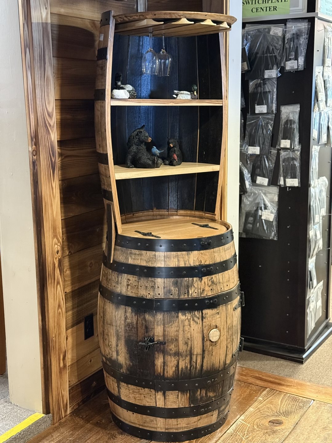 (#144) Barrel Hutch w/Shelves, Lazy Susan, Glass Rack - 70" High, Storage goes 11.5" Deep (#144) Barrel Hutch w/Shelves, Lazy Susan, Glass Rack - 70" High, Storage goes 11.5" Deep
