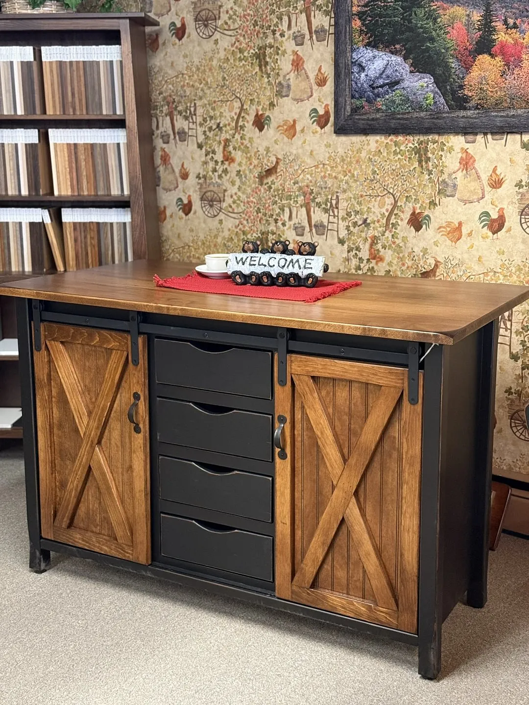 Honey Brook Woodcraft - (#4-C) X Barn Door Kitchen Island - 56 x 30 x 36 - Solid Pine, Wormy Maple Top, Antiqued 2 Tone w/Varnish Honey Brook Woodcraft - (#4-C) X Barn Door Kitchen Island - 56 x 30 x 36 - Solid Pine, Wormy Maple Top, Antiqued 2 Tone w/Varnish