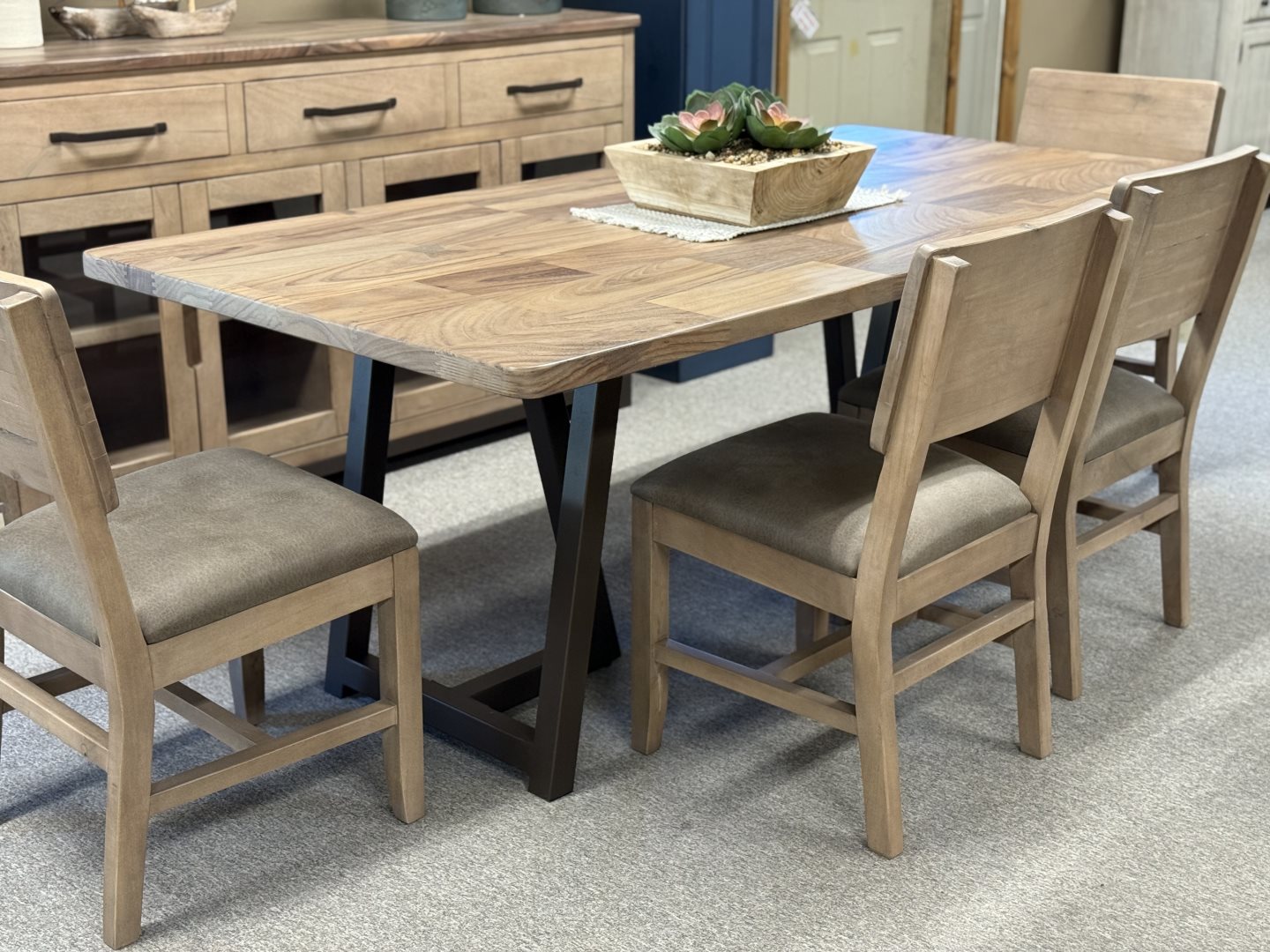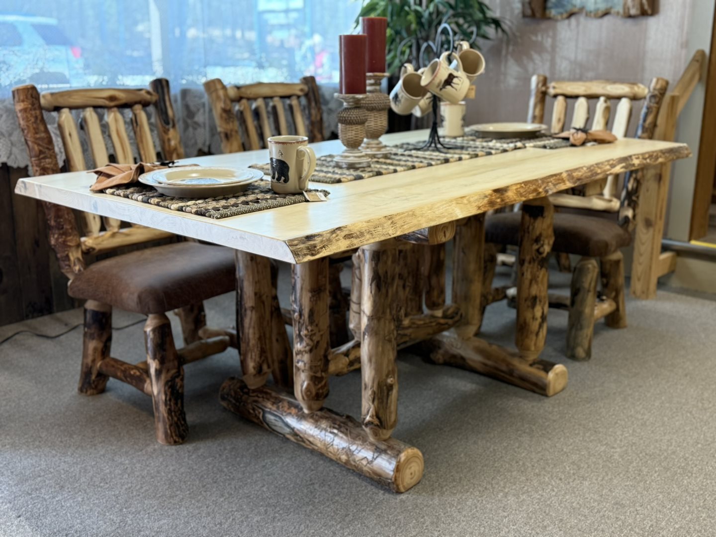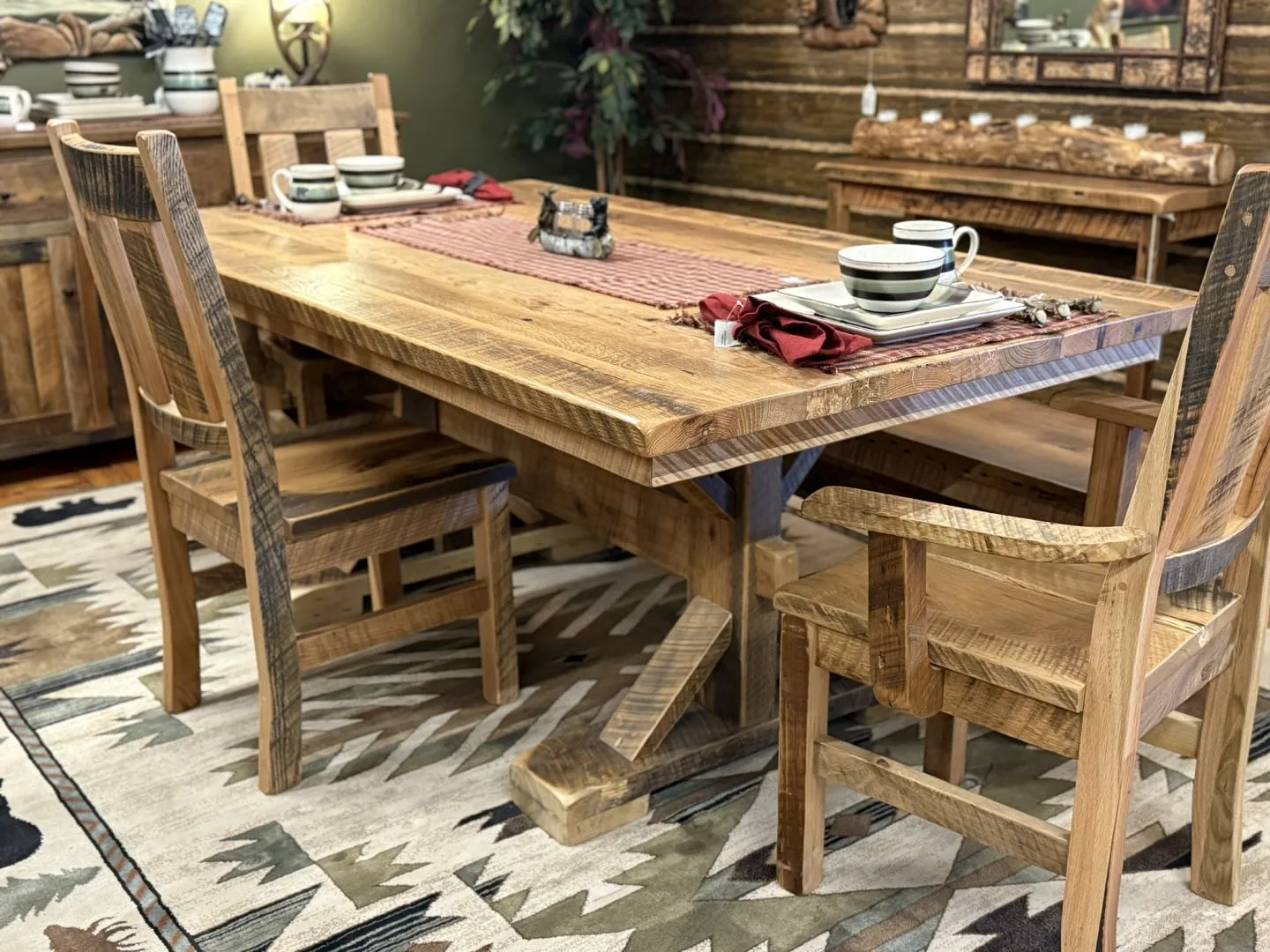 Table w/Trestle Base (#CA-211-TB) & (#CA-202) Chairs - 42 x 72 - Solid Aspen, Live Edge Top Table w/Trestle Base (#CA-211-TB) & (#CA-202) Chairs - 42 x 72 - Solid Aspen, Live Edge Top