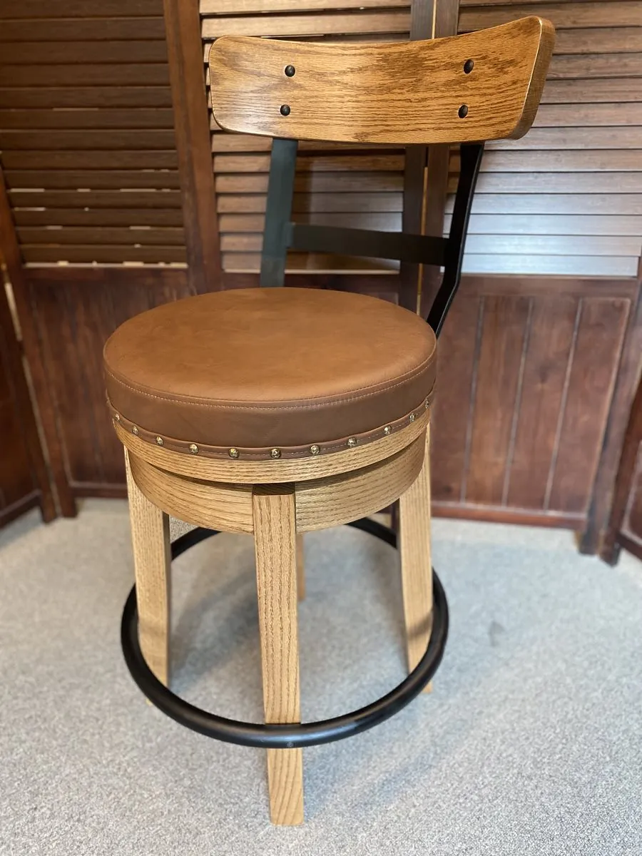 (#RSBB-922/1) 24" Swivel Counter Stool - Reclaimed Oak - Barrel Collection - Options Finish (#RSBB-922/1) 24" Swivel Counter Stool - Reclaimed Oak - Barrel Collection - Options Finish