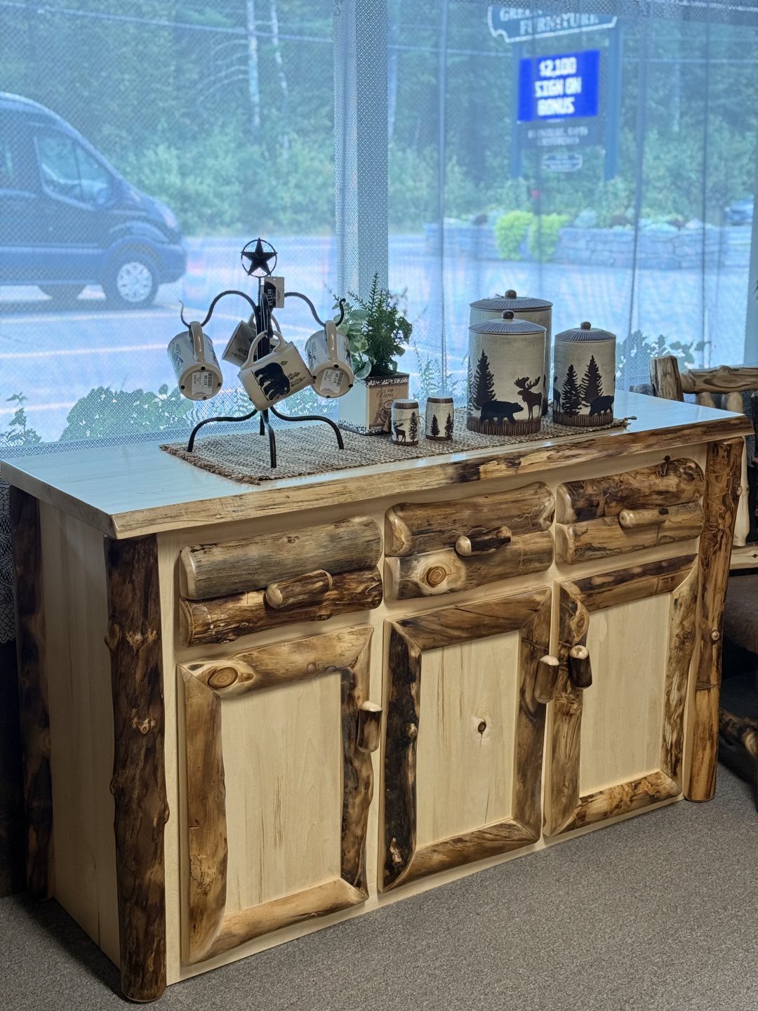 3 Door Buffet (#CA-215-B) - 61 x 20 x 36 - Solid Aspen, Live Edge Top 3 Door Buffet (#CA-215-B) - 61 x 20 x 36 - Solid Aspen, Live Edge Top