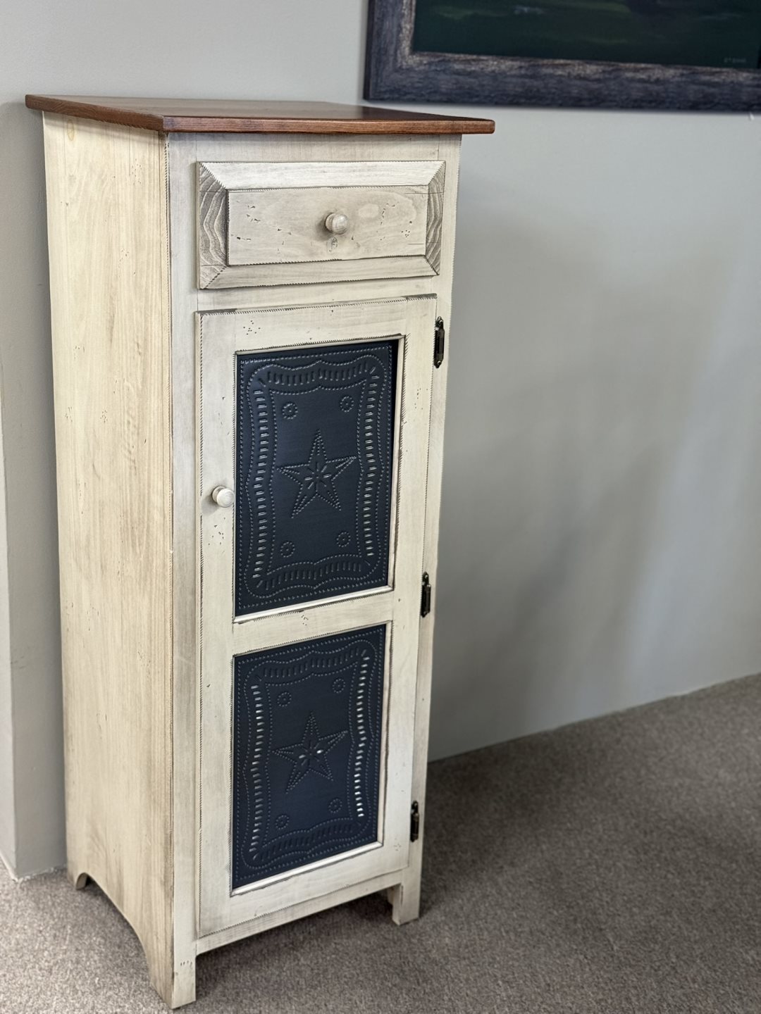 Fighting Creek - (#539) 1 Door Pie Safe, Tin Door - 18 x 16.25 x 46.25 - Solid Pine, Distressed - White Horse Collection Fighting Creek - (#539) 1 Door Pie Safe, Tin Door - 18 x 16.25 x 46.25 - Solid Pine, Distressed - White Horse Collection