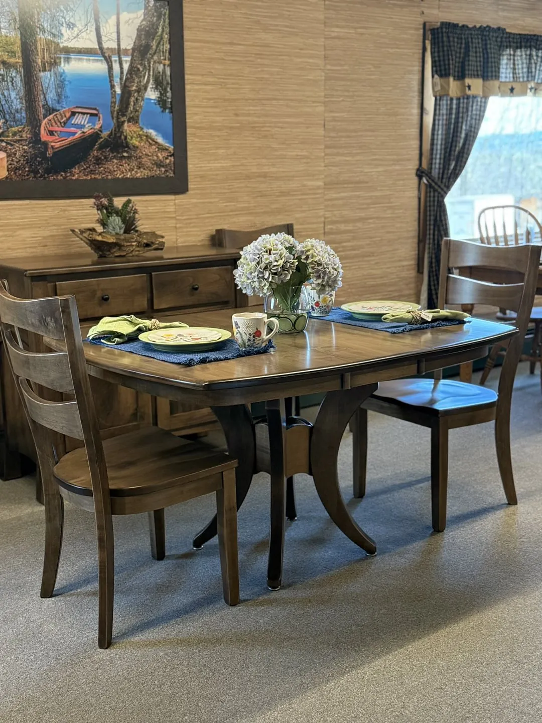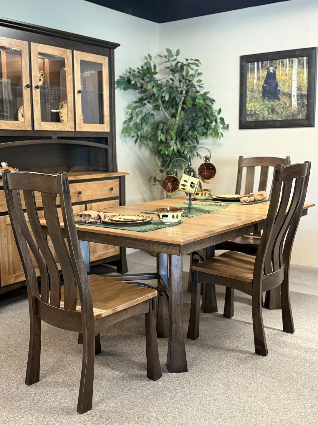 Double Madison Table (#DMAD/2) & Monarch (#1912) Chairs - 42 x 66, 2-12" Self Storing Leaves - Solid Brown Maple, 2 Tone Stain Double Madison Table (#DMAD/2) & Monarch (#1912) Chairs - 42 x 66, 2-12" Self Storing Leaves - Solid Brown Maple, 2 Tone Stain