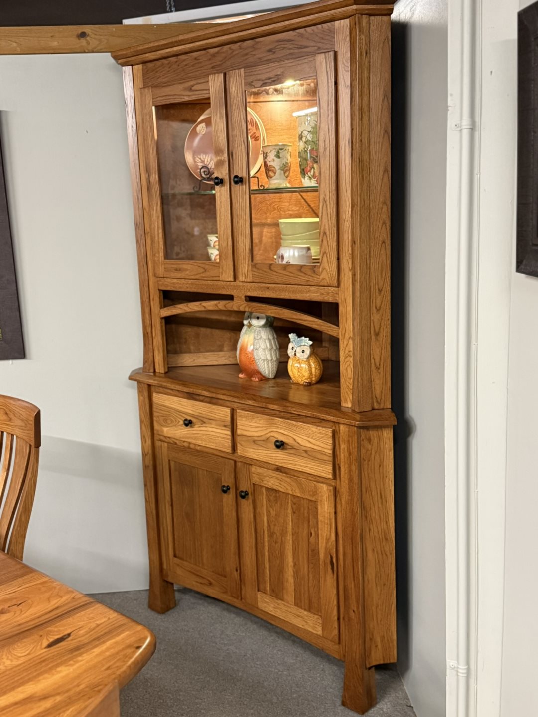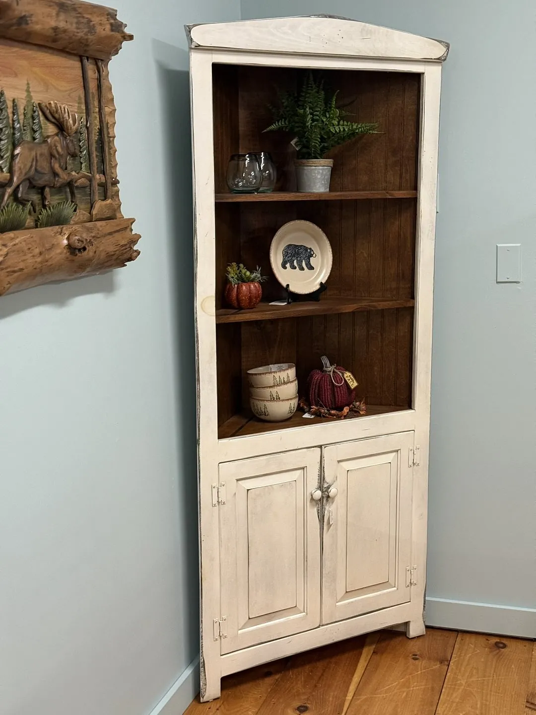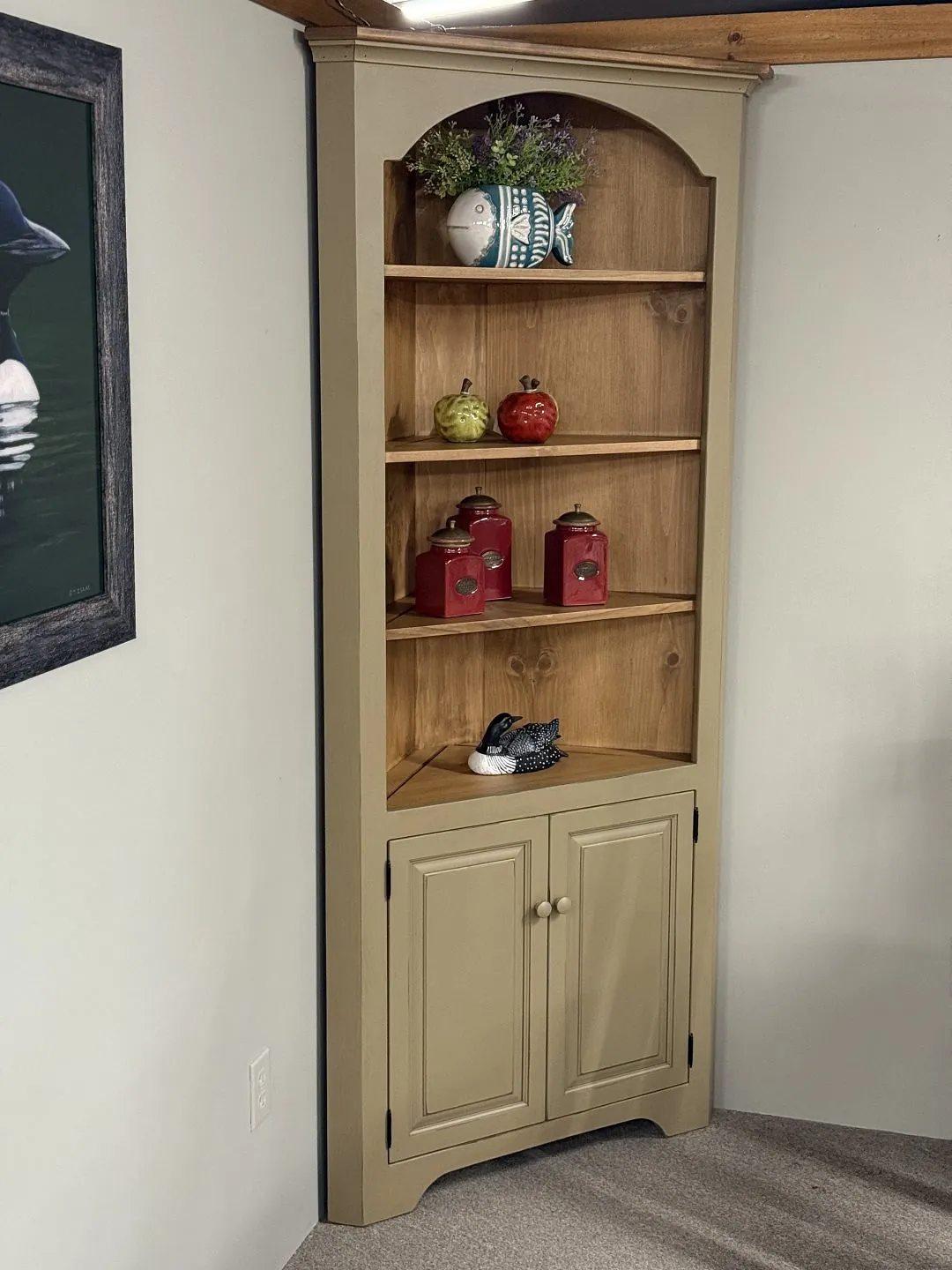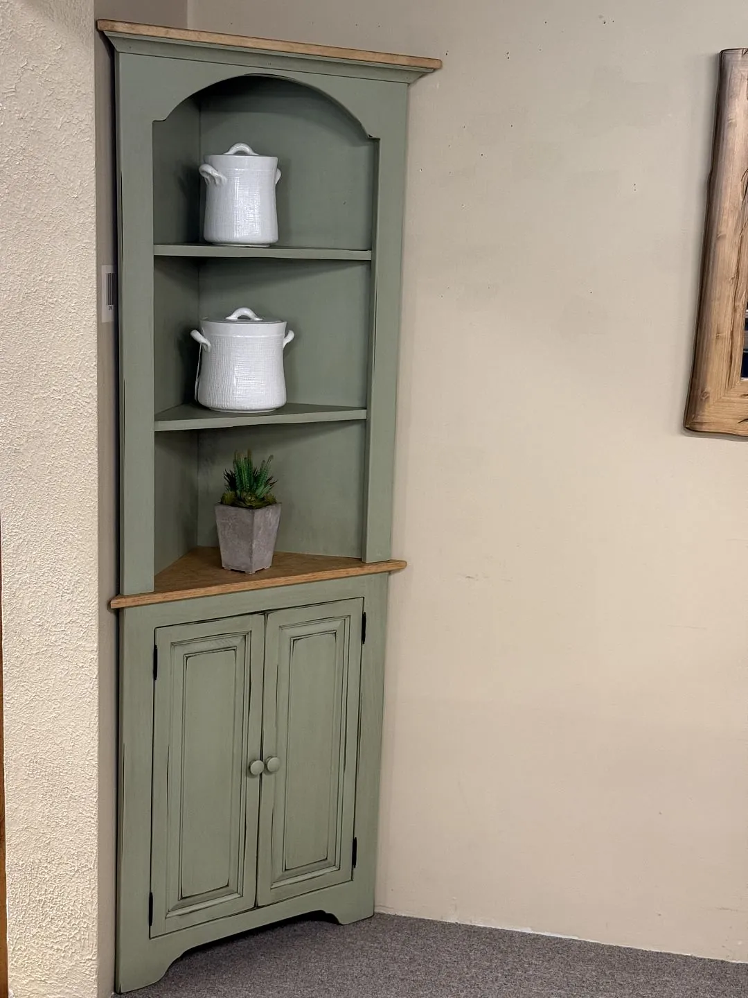 Honey Brook Woodcraft - (#5-R) Corner Cupboard - 32 x 14 x 72, 24" Along the Wall - Solid Pine, Antiqued 2 Tone Honey Brook Woodcraft - (#5-R) Corner Cupboard - 32 x 14 x 72, 24" Along the Wall - Solid Pine, Antiqued 2 Tone