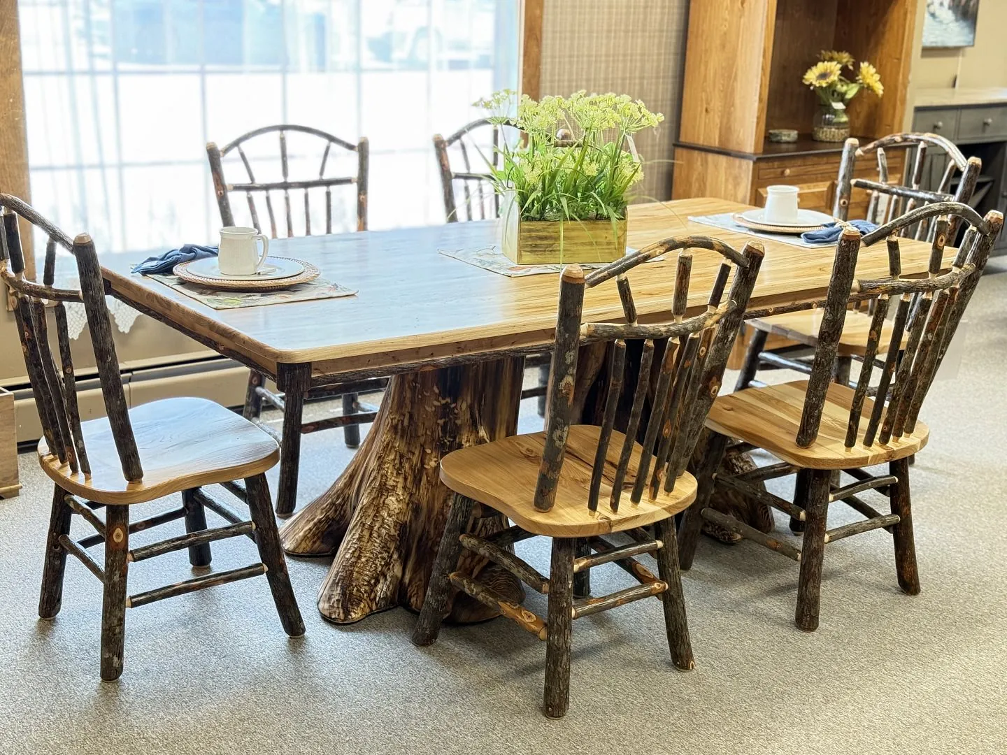 (#B-2409) Double Stump Dining Table - 42 x 84 - Solid Hickory & Natural Barked Hickory, Cedar Stumps (#B-2409) Double Stump Dining Table - 42 x 84 - Solid Hickory & Natural Barked Hickory, Cedar Stumps