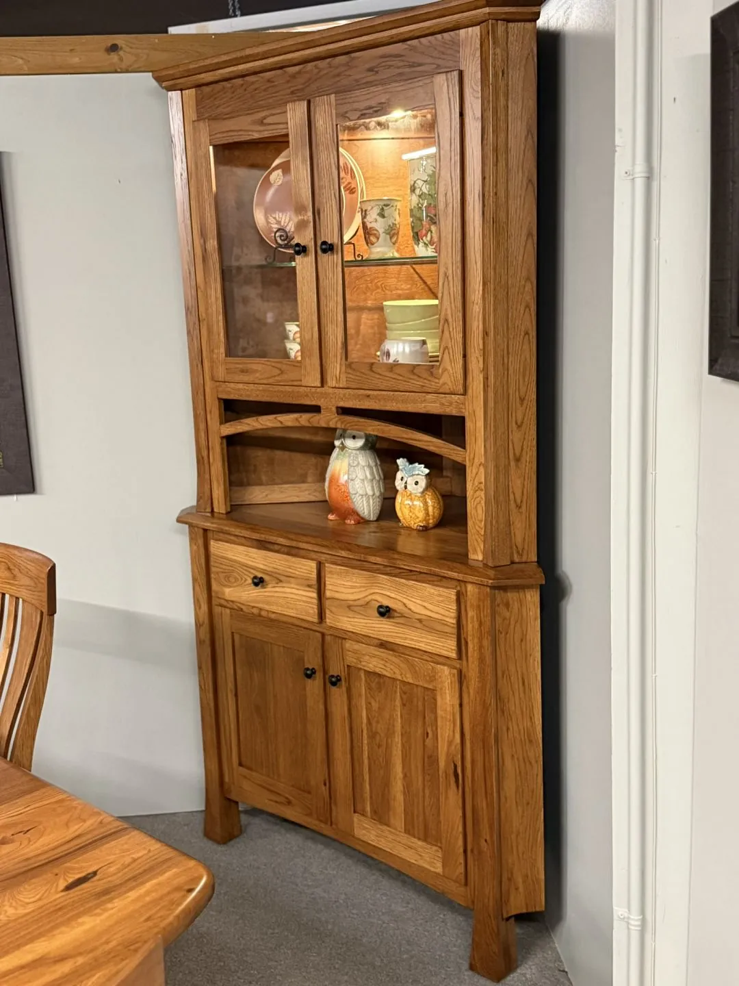 Madison Corner Hutch (#2436), Glass Shelves, Can Lights - 32 x 24 x 80 - Solid Rustic Hickory Madison Corner Hutch (#2436), Glass Shelves, Can Lights - 32 x 24 x 80 - Solid Rustic Hickory