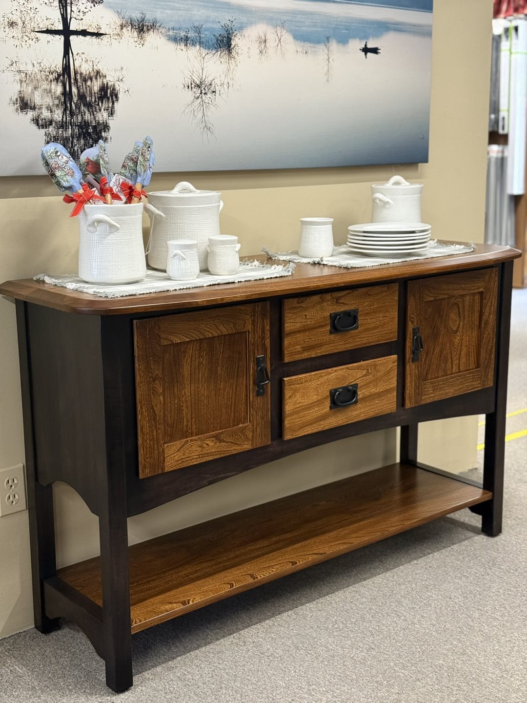 2 Door, 2 Drawer Richfield Server (#3249) - 56 x 18.50 x 34 - Solid Elm & Brown Maple, 2 Tone Stain 2 Door, 2 Drawer Richfield Server (#3249) - 56 x 18.50 x 34 - Solid Elm & Brown Maple, 2 Tone Stain