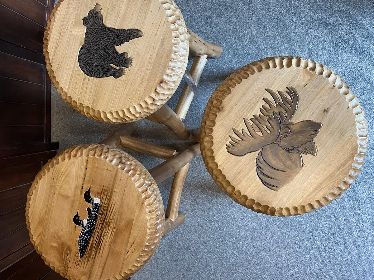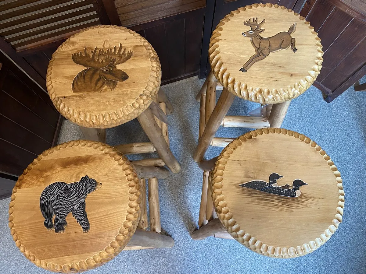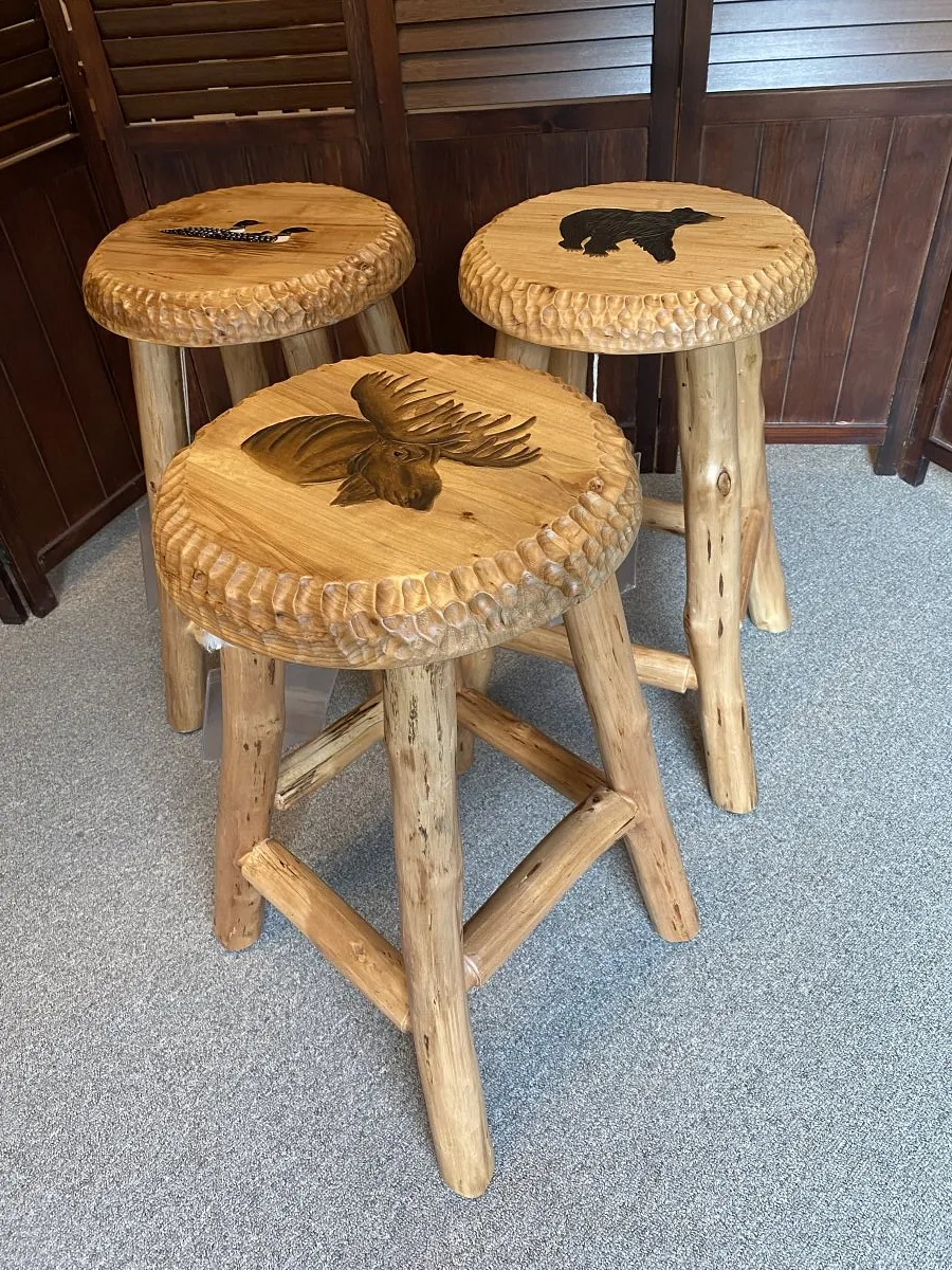 Dalin - FBT601S , FBT603S, FBT607S - 24" Wood Stool - Moose, Black Bear, Loons, Deer (not pictured) Dalin - FBT601S , FBT603S, FBT607S - 24" Wood Stool - Moose, Black Bear, Loons, Deer (not pictured)