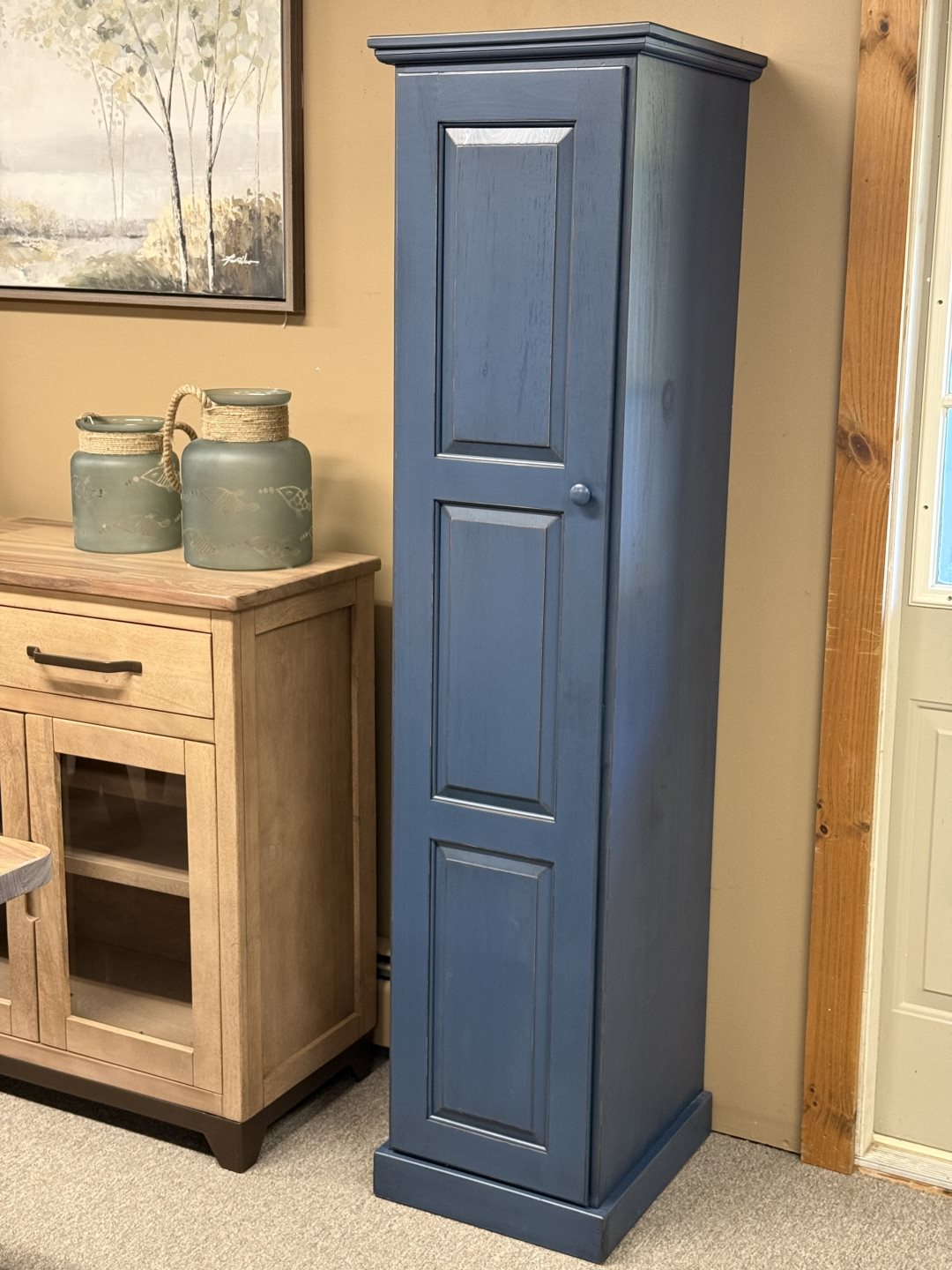 Fighting Creek - (#VR8032/1) - 1 Door Pantry, 1 Fixed-4 Adjustable Shelves - 17 x 19 x 72 - Solid Pine, Paint & Black Glaze - Valley Collection Fighting Creek - (#VR8032/1) - 1 Door Pantry, 1 Fixed-4 Adjustable Shelves - 17 x 19 x 72 - Solid Pine, Paint & Black Glaze - Valley Collection