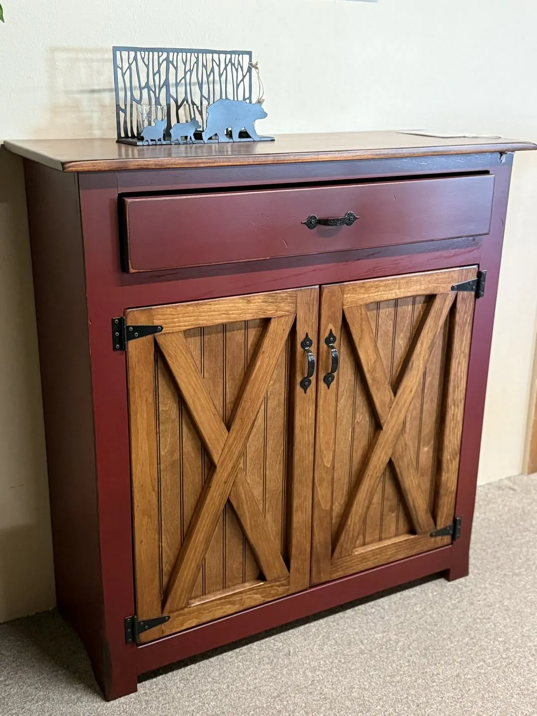 Honeybrook Woodcraft - (#3-H) X-Barn Door Jelly Cupboard - 38 x 15 x 40 - Solid Pine, Antiqued 2 Tone Honeybrook Woodcraft - (#3-H) X-Barn Door Jelly Cupboard - 38 x 15 x 40 - Solid Pine, Antiqued 2 Tone