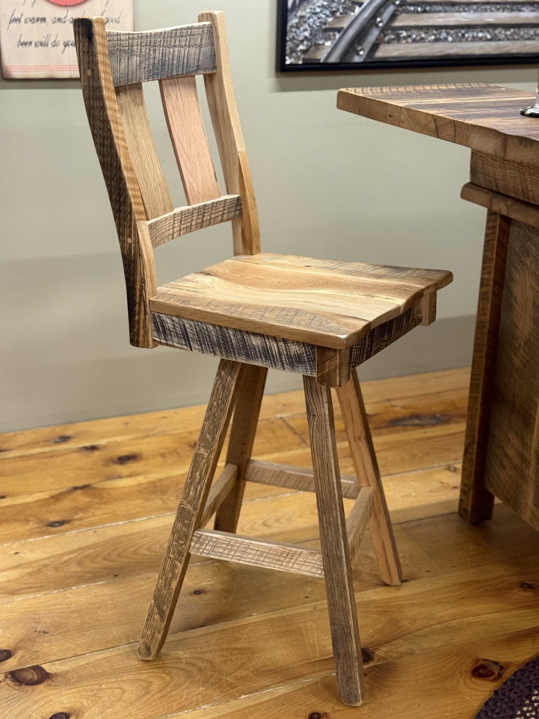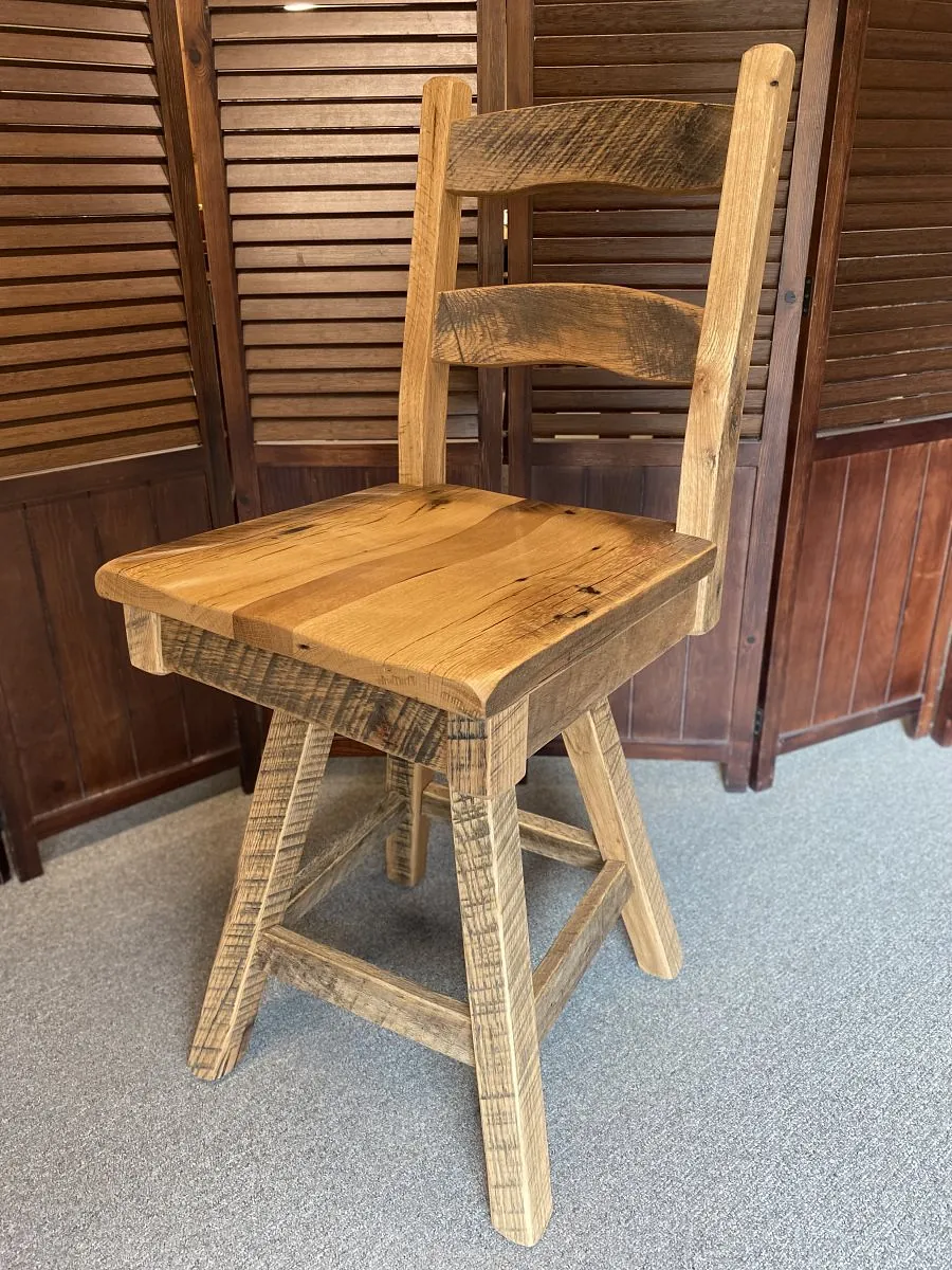 (#RSBB-922/2) 24" Swivel Counter Chair - Solid Reclaimed Oak w/Burnished Edges - Options: Finish (#RSBB-922/2) 24" Swivel Counter Chair - Solid Reclaimed Oak w/Burnished Edges - Options: Finish