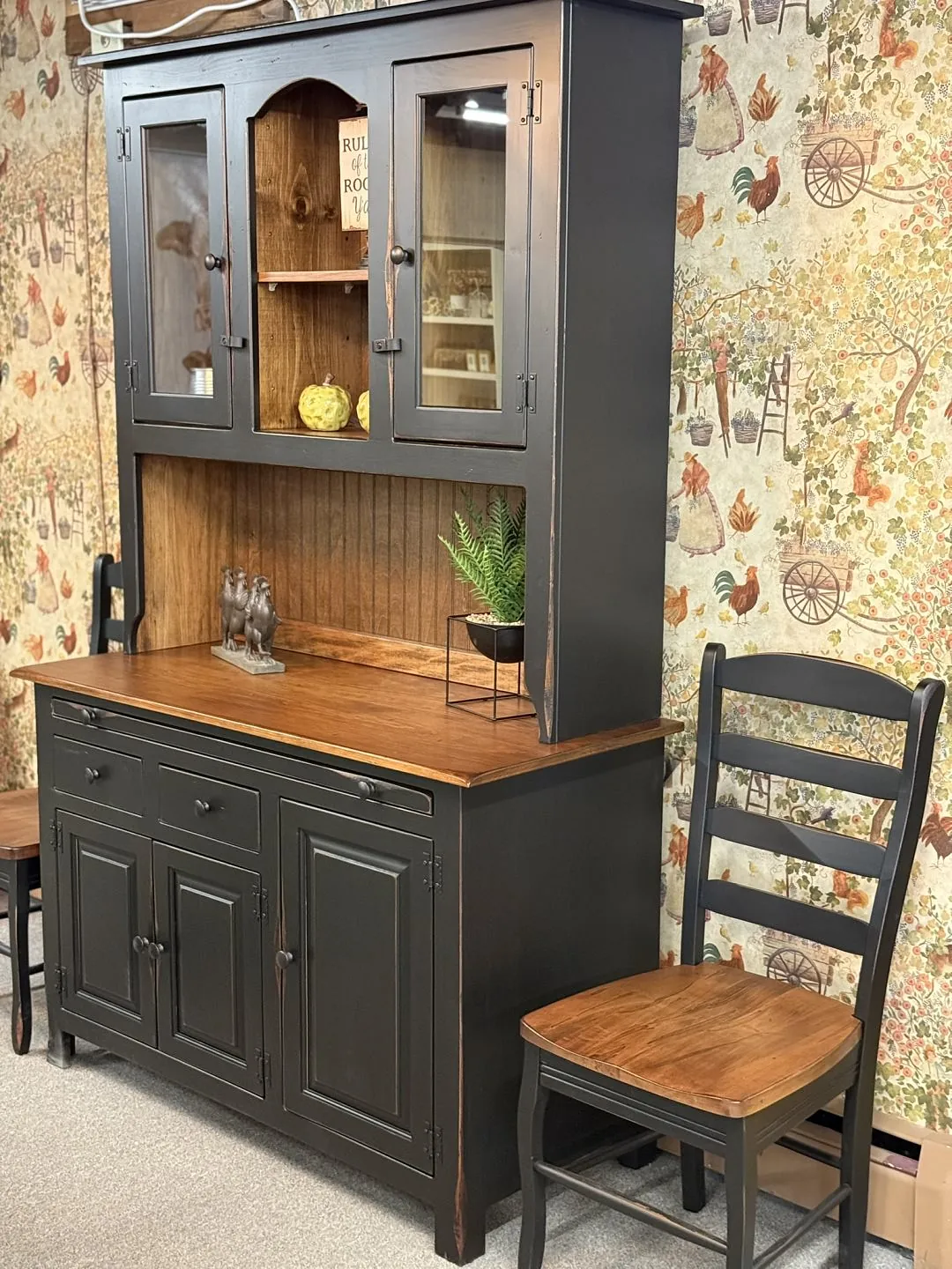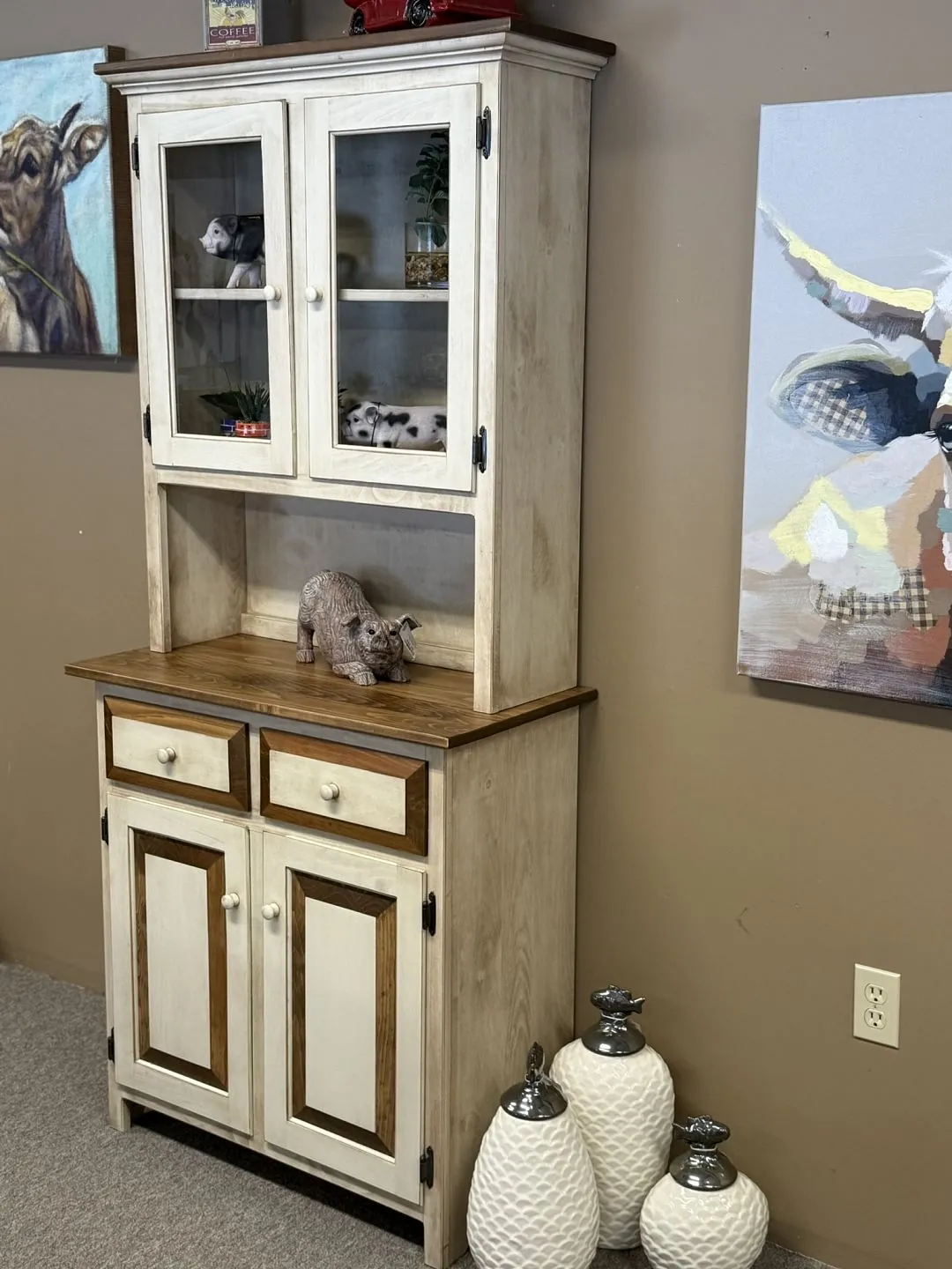 (#418) - Small Primitive Lancaster Hutch - 32.50 x 16 x 72.50 - Solid Pine, 2 Toned Paint & Stain (#418) - Small Primitive Lancaster Hutch - 32.50 x 16 x 72.50 - Solid Pine, 2 Toned Paint & Stain