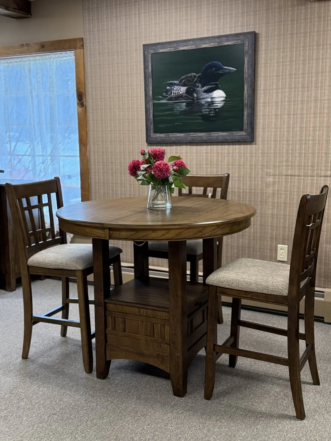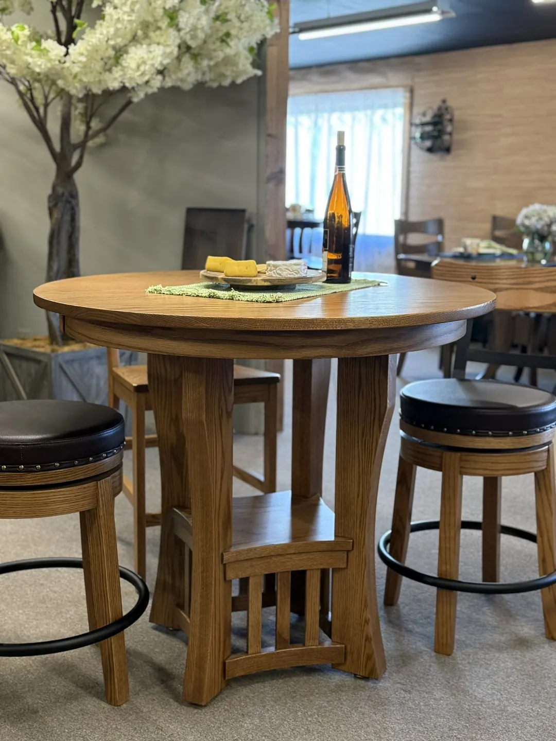 Salida Counter Table (#SAL) & Kelso (#24/3) Swivel Stools - 42" Round - Solid Oak Salida Counter Table (#SAL) & Kelso (#24/3) Swivel Stools - 42" Round - Solid Oak