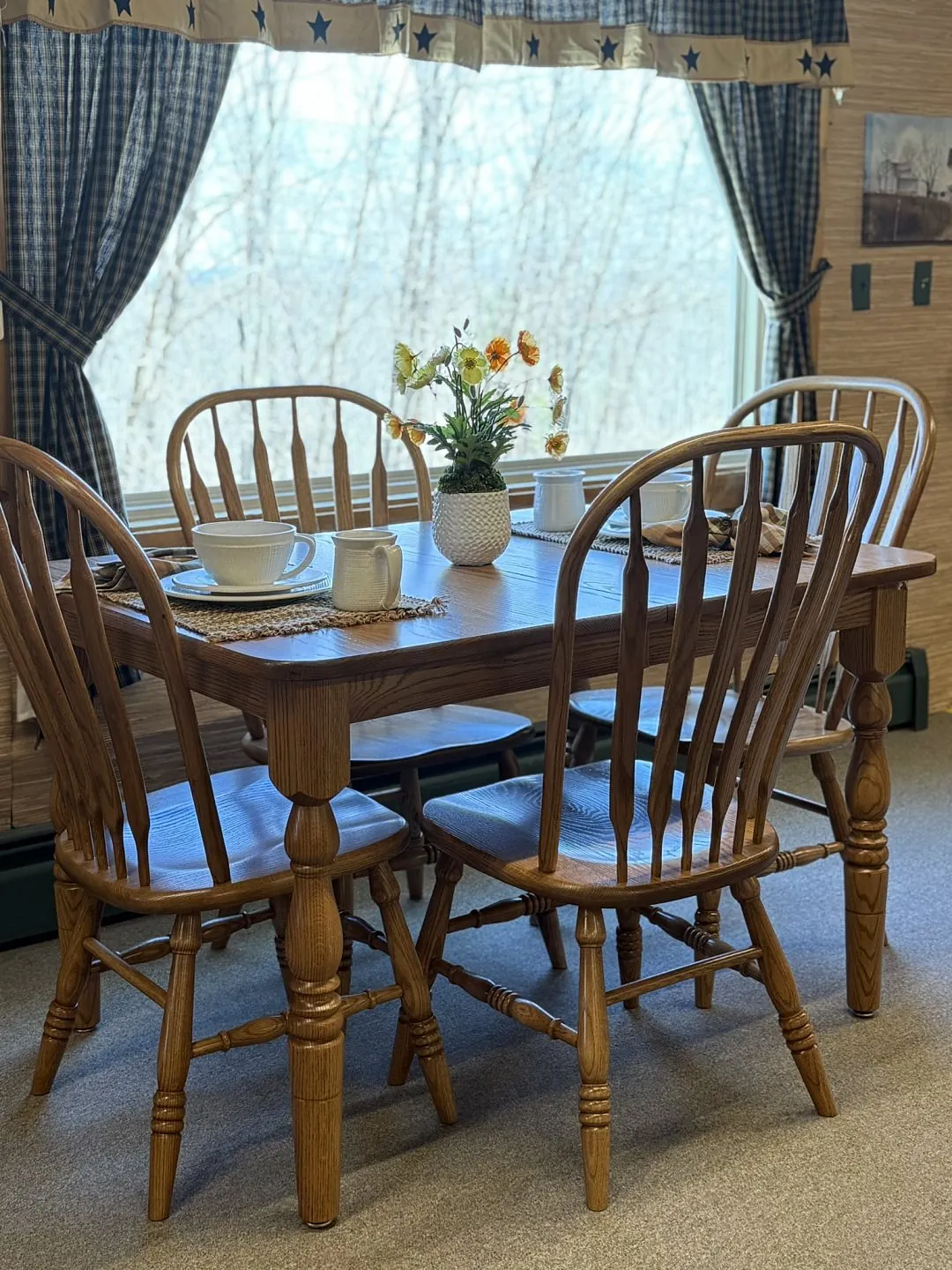 Galveston Table (GALV/4) & Kington (#2380) Side Chairs - 42 x 42, 1-12" Leaf - Solid Brown Maple, 4 Bowed Sides Galveston Table (GALV/4) & Kington (#2380) Side Chairs - 42 x 42, 1-12" Leaf - Solid Brown Maple, 4 Bowed Sides