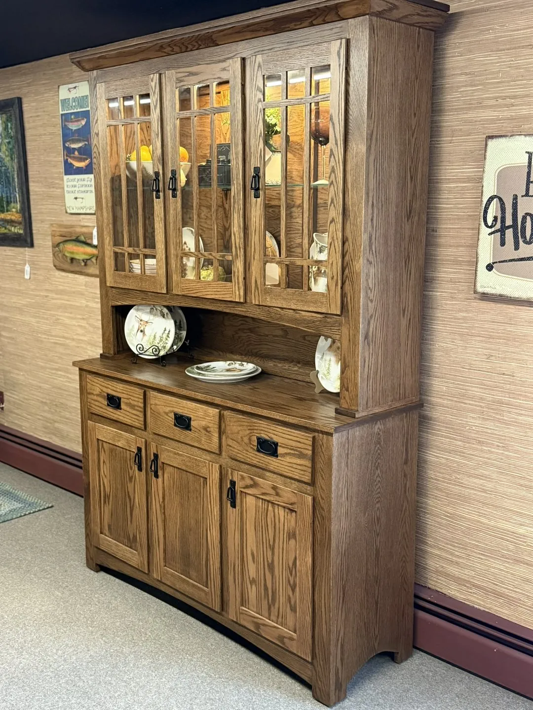3 Door Plain Austin Hutch (#1034), Glass Shelves, Can Lights - 58 x 17.50 x 82 - Solid Oak 3 Door Plain Austin Hutch (#1034), Glass Shelves, Can Lights - 58 x 17.50 x 82 - Solid Oak