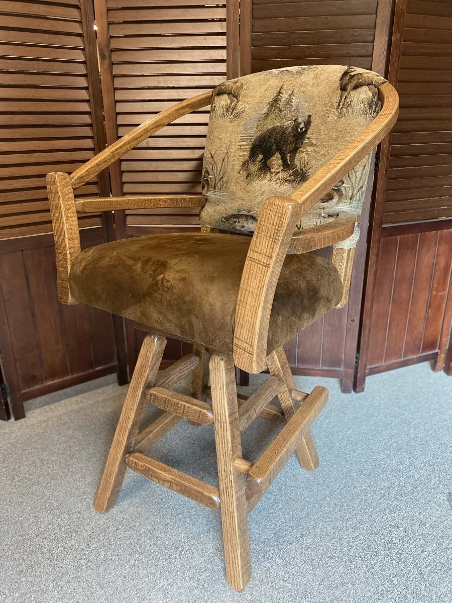 Amish - CW164-S/1 - 24" Swivel Hoop Counter Stool - Rough Sawn Oak - Options Finish, Fabric Amish - CW164-S/1 - 24" Swivel Hoop Counter Stool - Rough Sawn Oak - Options Finish, Fabric