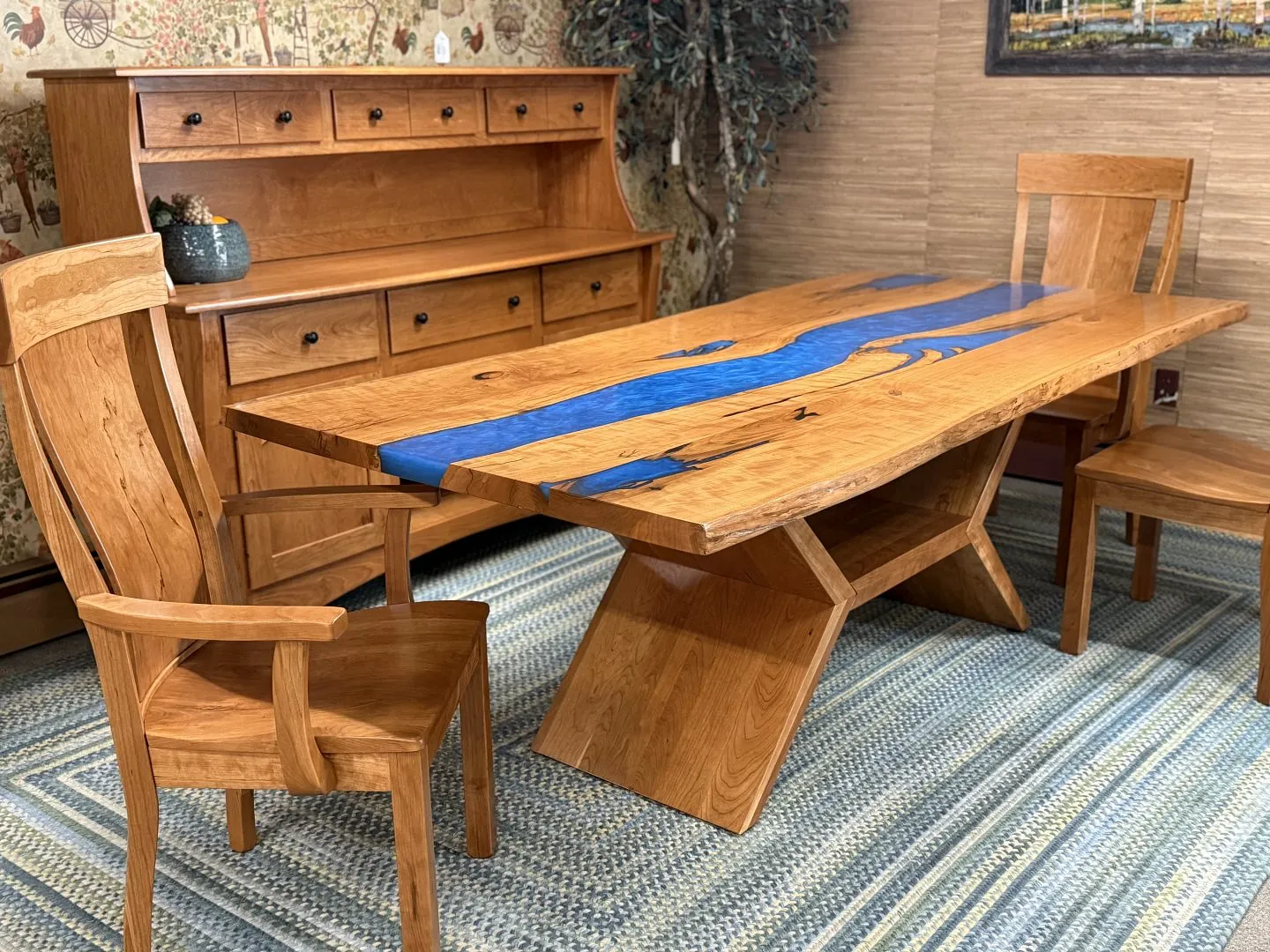 Denver (#DENVER/2) Epoxy Resin River Table & Weldon (#2540) Chairs - 42 x 84 - Solid Rustic Cherry, Live Edge Slabs, Maui Resin Denver (#DENVER/2) Epoxy Resin River Table & Weldon (#2540) Chairs - 42 x 84 - Solid Rustic Cherry, Live Edge Slabs, Maui Resin
