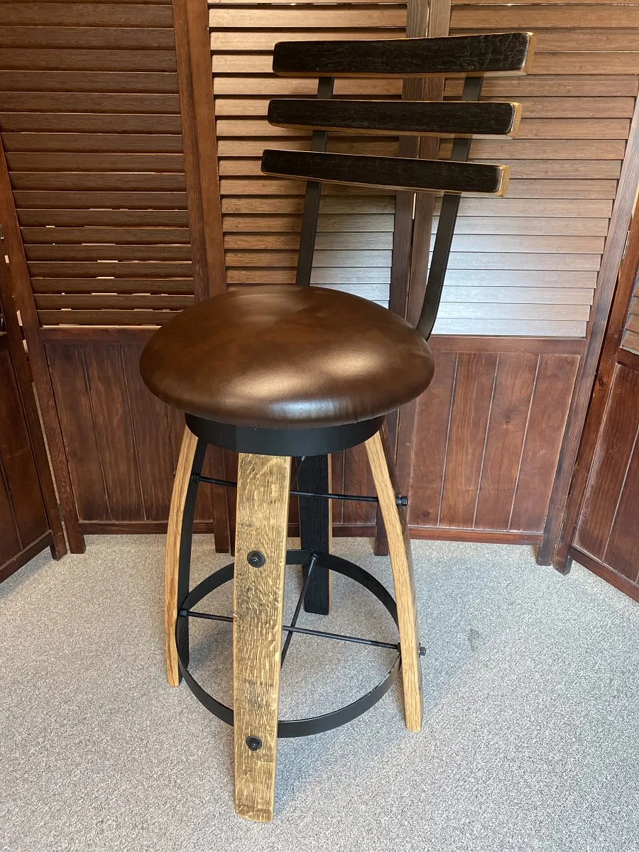 (#112-30/1) 30" Swivel Barstool w/Back - Natural Barrel Staves (#112-30/1) 30" Swivel Barstool w/Back - Natural Barrel Staves