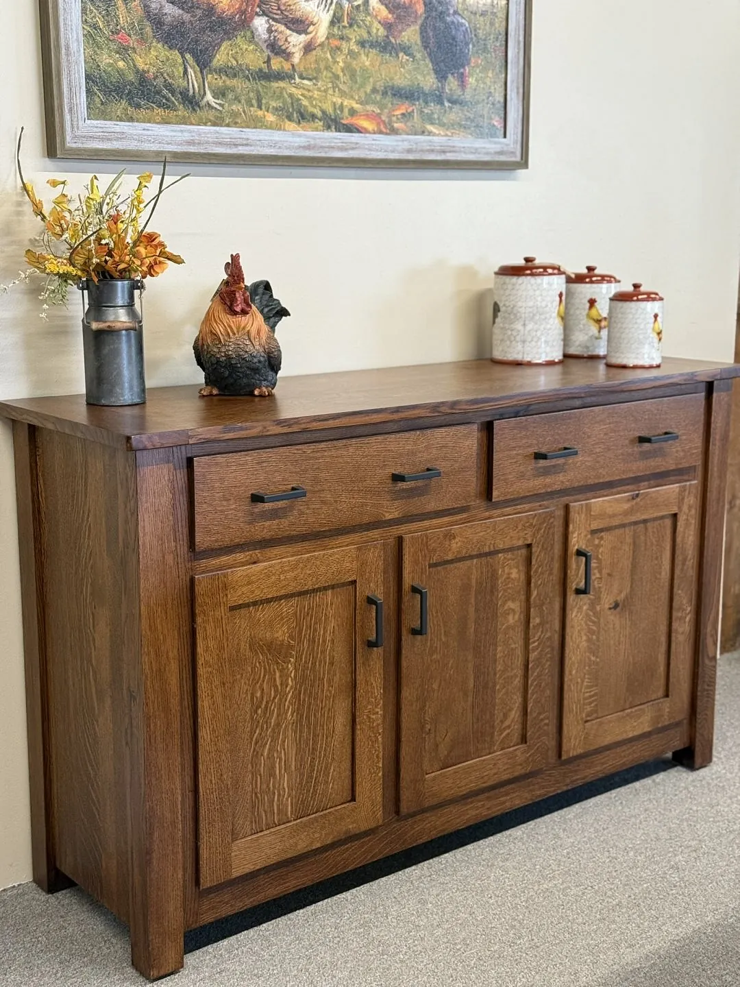 Logan 3 Door Buffet (#2342), Breadboard Ends - 58 x 18 x 35 - Solid Rustic Quarter Sawn White Oak, No Saw Marks Logan 3 Door Buffet (#2342), Breadboard Ends - 58 x 18 x 35 - Solid Rustic Quarter Sawn White Oak, No Saw Marks