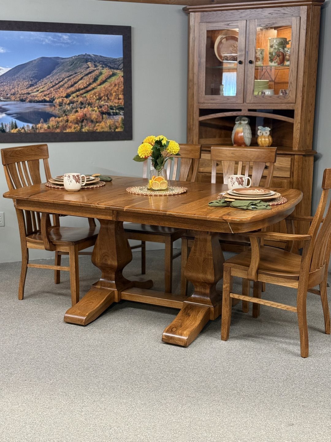 Ashley Double Pedestal Table (#ASH/3) & Hudson Chairs (#1600) - 42 x 66, 2-12" Self Storing Leaves - Solid Rustic Hickory, 4 Feet on Pedestals Ashley Double Pedestal Table (#ASH/3) & Hudson Chairs (#1600) - 42 x 66, 2-12" Self Storing Leaves - Solid Rustic Hickory, 4 Feet on Pedestals