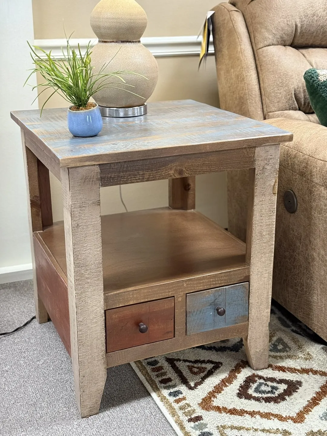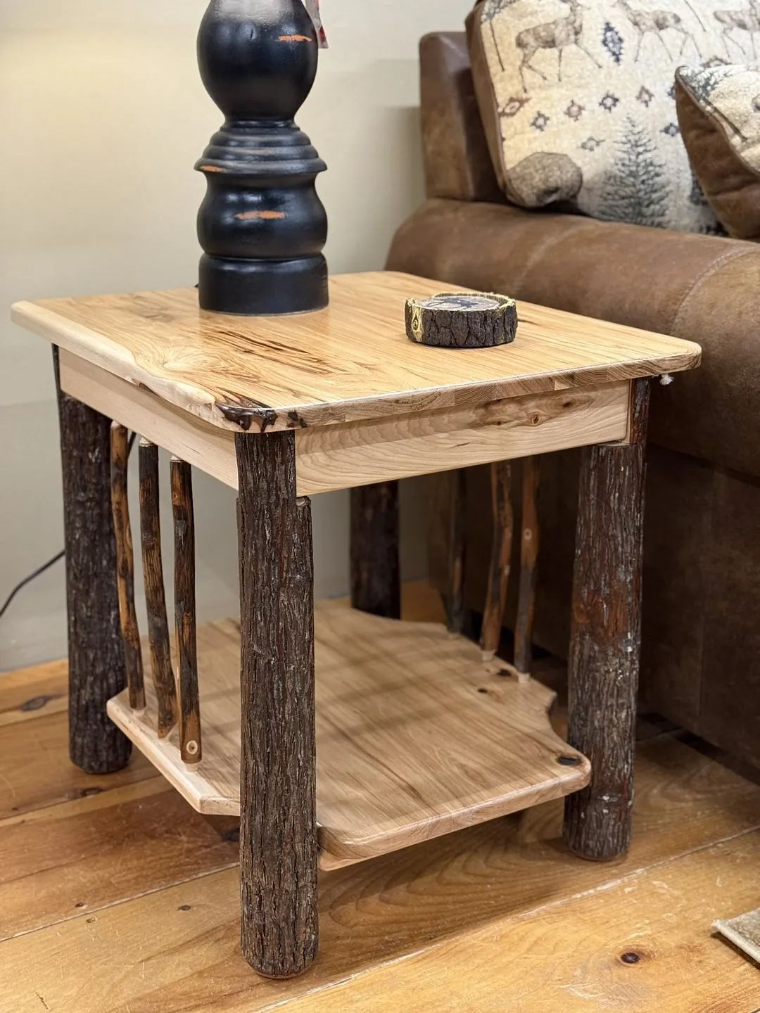 (#UWW-321) - 1 Drawer End Table - 20 x 26 x 24 - Solid Rustic Hickory - Farmhouse Collection (#UWW-321) - 1 Drawer End Table - 20 x 26 x 24 - Solid Rustic Hickory - Farmhouse Collection