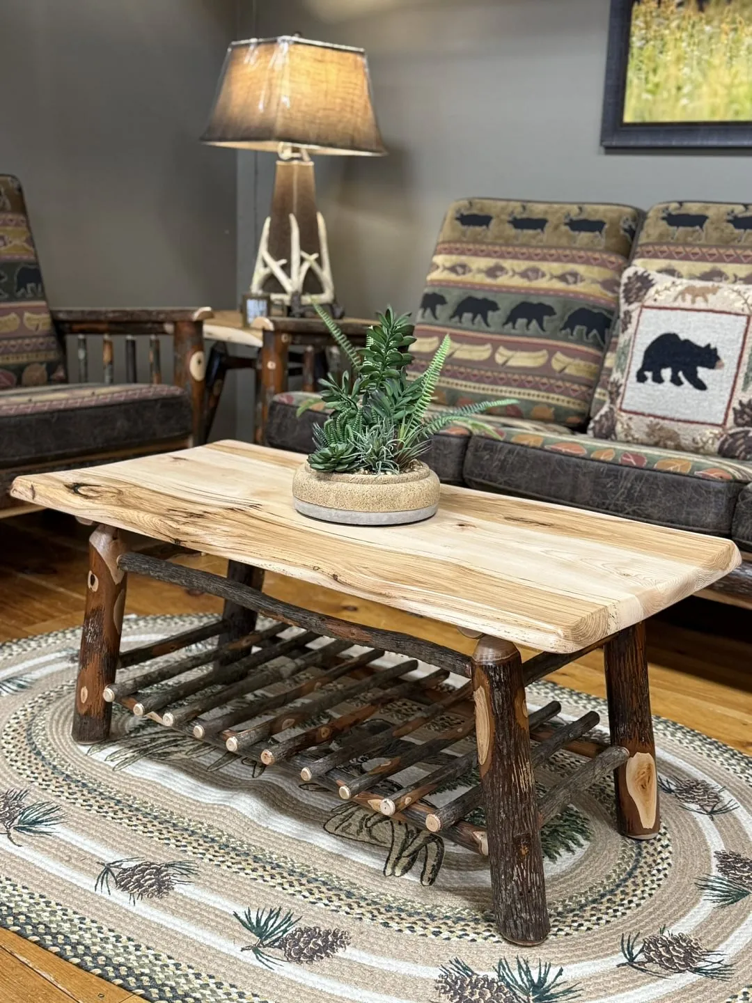 B-1200-WE - Spindle Shelf - 22 x22 x 24 - Solid Hickory & Barked Hickory, Wavy Edgev B-1200-WE - Spindle Shelf - 22 x22 x 24 - Solid Hickory & Barked Hickory, Wavy Edgev