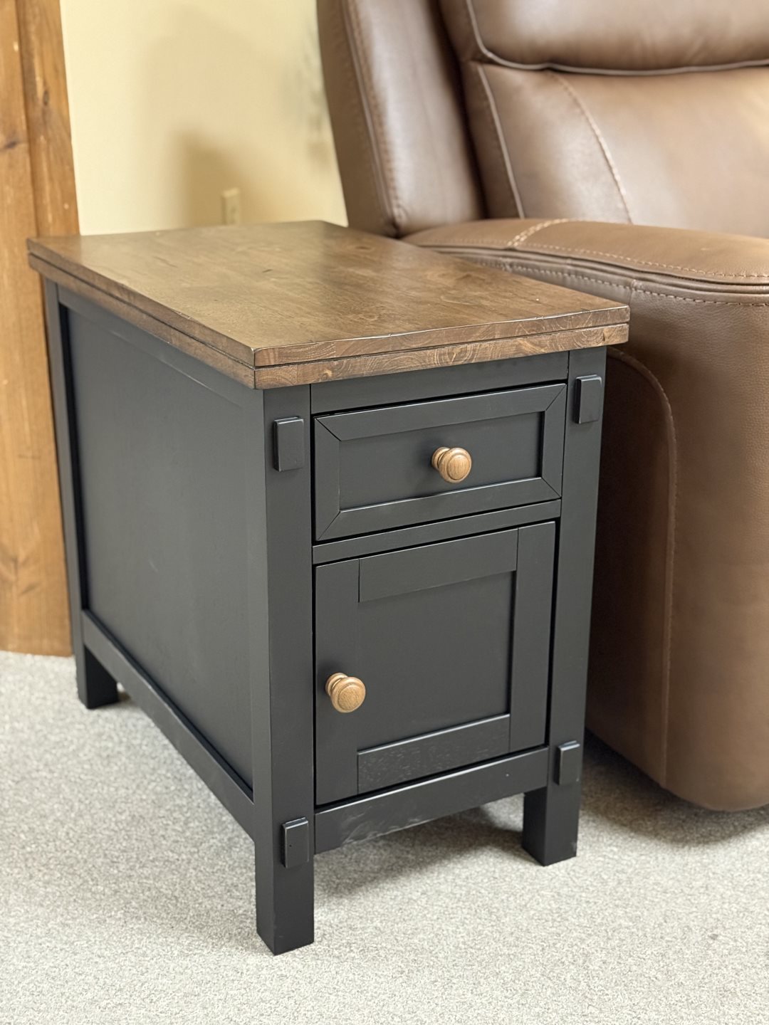 MTF-245 - 1 Drawer - 26 x 24 x 24 - Rough Sawn Oak Tops, Brown Maple, Iron Bar Accents - Carla Collection MTF-245 - 1 Drawer - 26 x 24 x 24 - Rough Sawn Oak Tops, Brown Maple, Iron Bar Accents - Carla Collection