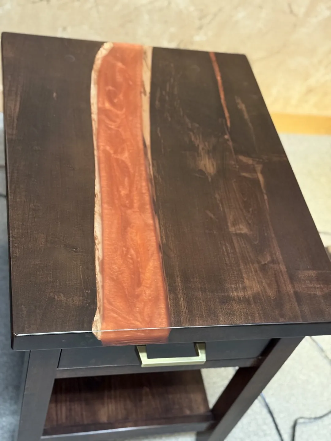 UWW-621 - 1 Drawer, "Copper" Epoxy River - 20 x 24 x 26 - 2" Thick Reverse Live Edge Top, Brown Maple - Tamba Bay Collection UWW-621 - 1 Drawer, "Copper" Epoxy River - 20 x 24 x 26 - 2" Thick Reverse Live Edge Top, Brown Maple - Tamba Bay Collection